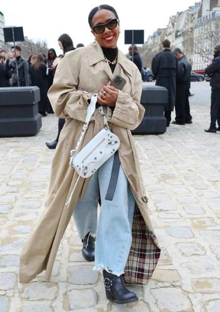 A kako se približava sezona hladnijeg vremena, s njom dolazi i vreme proslava i večernjih izlazaka. Zato je pametno imati spremnu kombinaciju koja se lako prilagođava svakoj prilici. Za glamurozniji efekat, uz farmerke cigarette kroja birajte bluzu s perlicama ili šljokicama, dugi crni baloner i prozirne salonke s kaišem oko gležnjeva. Elegantno, moderno i nepogrešivo — baš u stilu Amal Clooney.