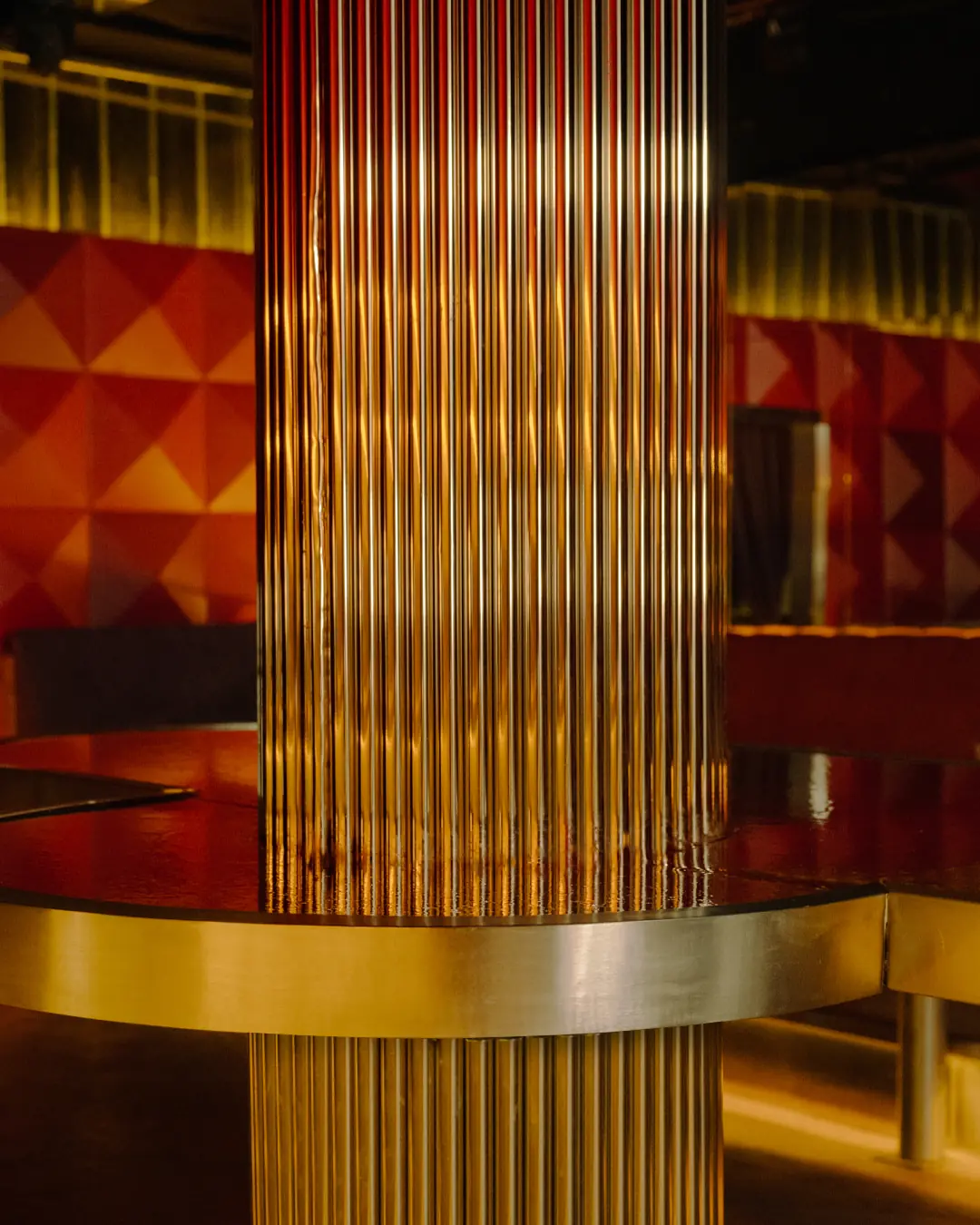 Interesovalo me je i koji su to retki, potpuno novi elementi u enterijeru – ali čak i oni su rađeni tako da to ne primetite, u skladu s epohom, s mnogo sjajnog metala i stakla. Što se tiče šanka, gledale smo da ta materijalizacija bude svedena kao u tom nekom periodu 60-ih i 70-ih, pa smo mi koristile metal kako bi dobile taj sjaj i taj space-age efekat. Posebno je interesantna priča vezana za metalni stub koji se nalazi u epicentru kluba, a za koji je Aleksandra, sasvim slučajno, inspiraciju pronašla tokom letovanja u Rovinju. Taj stub nam je smetao od početka, on je centralan, on je konstruktivan, nismo mogli da ga sklonimo iako seče taj vizualni moment između DJ-a i prostora. Onda sam u Rovinju naišla na tu zgradu sa čitavom kolonom identičnih stubova koji su me fascinirali i odlučila da to prenesem i u projekat.