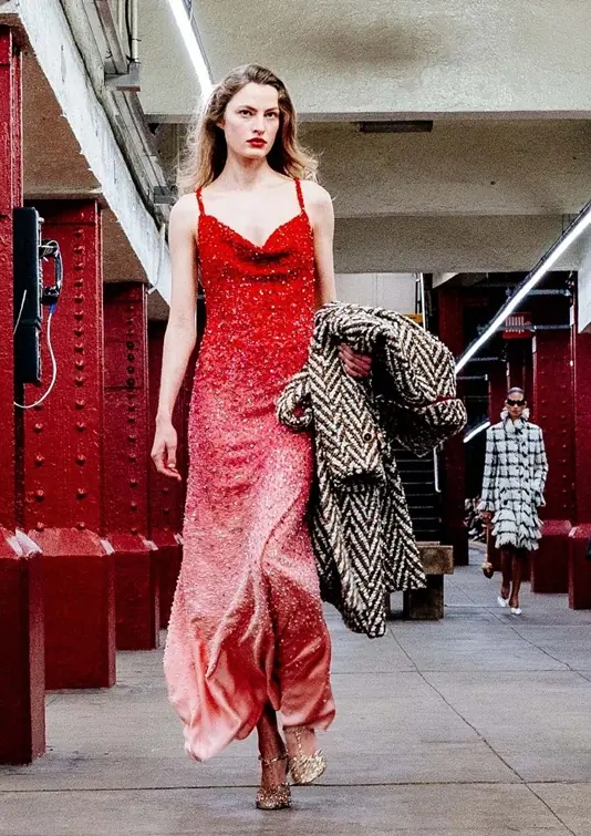 Zanimao me je njujorški subway jer mislim da je New York jedini grad na svetu gde podzemnu železnicu koriste svi slojevi društva, izjavio je Matthieu Blazy, koji je u Velikoj jabuci proveo godine radeći za Calvin Klein, za Vogue Runway povodom svoje dugoiščekivane Métiers d’art revije za Chanel. Nakon što je za francusku modnu kuću debitovao u oktobru kolekcijom za proleće/leto 2026., a mediji i publika su taj show gotovo jednoglasno proglasili „debijem sezone”, Blazy se našao pred zadatkom da opravda velika očekivanja – ona koja su neretko veća za drugu reviju nego za prvu, jer upravo ona dokazuje da debi nije bio tek slučajni bljesak genijalnosti ili rezultat puke sreće. Tom trenutku publika je svedočila sinoć kada je neaktivna stanica podzemne železnice 168 Bowery na linijama J i Z pretvorena u modnu pistu. Iz zvučnika su odzvanjali zvukovi vozova, a neobična pista bila je nadopunjena promišljenim scenografskim elementima – starinskim telefonskim govornicama.