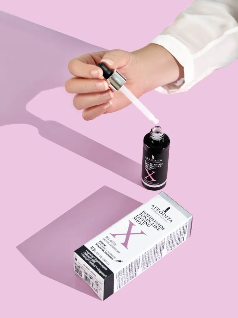 Afrodita X shot je jedan od onih seruma o kojem se brzo proširila vest. Serum spaja moć nekoliko vrsta peptida kako bi doneo efekat za prevenciju mimičkih bora i smanjio vidljivost postojećih bora. Mogli su se čuti komentari o tome kako ovaj serum deluje kao kao botoks. Ova izuzetno jaka kozmetička tvrdnja stoji na čvrstim nogama. X shot je poseban zbog jednog unikatnog peptida pod nazivom Argireline Amplified peptid. On je nova, poboljšana verzija Argireline peptida, koji se smatra prvim kozmetičkim sastojkom na tržištu koji imitira delovanje botulinum toksina , jer se peptid spaja na iste receptore kao i botoks. Druga vrsta peptida koju serum sadrži su signalni peptidi koji podstiču sintezu kolagena. X shot je serum koji istovremeno sprečava nastanak bora i smanjuje vidljivost postojećih. Za najbolji rezultat preporučujem minimum 2 meseca kontinuirane upotrebe.