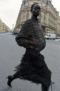 Ne bismo mogli da završimo bez spominjanja dugih boho suknji sa resama jer ne postoji detalj koji bolje definiše ovu estetiku od resa. Ovoga puta izdvajamo model iz Zare koji je lako dostupan i jednostavan za stilizovanje. Duga suknja daje pokret i karakter, dok bomber jakna štiti od hladnoće. Završni dodir čine visoke čizme na petu koje, osim što su u trendu, dodatno izdužuju i oblikuju siluetu.