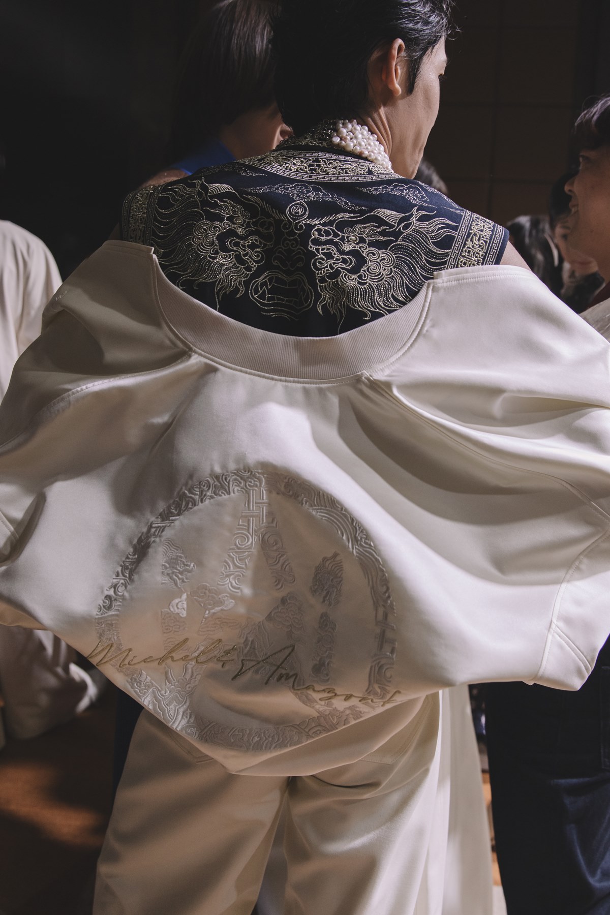 U hiperprodukciji modnog sadržaja, u kojoj se svakodnevno gubim i ponovo pronalazim, malo je onih fotografija koje se trajno usele u moje sećanje. No vizuali mongolskih uniformi koje je za Olimpijske igre 2024. u Parizu dizajnirala modna kuća Michel&Amazonka ubrajaju se među retke slike koje i dalje brižno čuvam u jednom od mentalnih foldera. Danas, dok se ponovo divim lepoti zlatnog veza i preciznosti kroja, nimalo ne čudi što se rad dizajnerskog dvojca iz Ulan Batora našao na listama najlepših olimpijskih uniformi svih vremena. Iz istog razloga nije me začudio ni entuzijazam posetilaca Nedelje mode u Almatiju, koji nisu skrivali oduševljenje kada su saznali da ih na rasporedu drugog dana očekuje revija sestara Michel i Amazonke Choigaalaa. Njihovo prvo predstavljanje u Kazahstanu iščekivalo se s jednakom dozom uzbuđenja kao što tinejdžeri iščekuju koncerte svojih pop-idola. I s pravom! Kolekcija koja je prošetala pistom pokazala je zadivljujuću raskoš njihova talenta, ali i neverovatnu predanost ručnom radu, dovedenom do nivoa savršenstva. Haljina s rubom od belog perja (koje se ušiva pero po pero) ili pak kreacije s njima prepoznatljivim zlatnim vezom toliko su čudesne da je nemoguće ne izgubiti se u lepoti svih tih detalja, ali i romantizovanju ljudske posvećenosti i strpljenja.