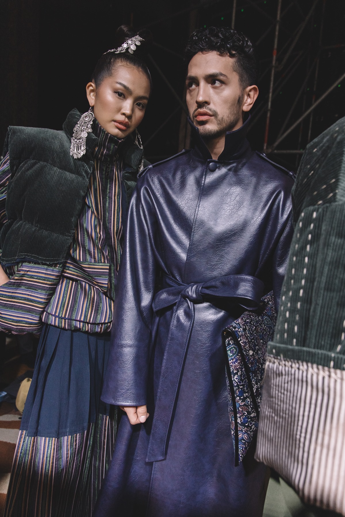 Za svoju prezentaciju u kazahstanskom Almatyju, brend Michel&Amazonka odabrao je 24 kreacije koje se ističu složenim ručnim radom, prefinjenošću i besprijekorno oblikovanim siluetama. Iako svoj prepoznatljiv modni rukopis beskompromisno isprepliću mongolskom kulturnom baštinom i simbolikom, njihova namera nije kreirati odeću koju bismo mogli opisati kao etno. Kombinacija savremenih stilova i tradicionalnih mongolskih elemenata rezultira onime što i sami nazivaju prêt-à-couture, ali ono što njihovu odeću čini univerzalno lepom i vanvremenskom je kvalitet materijala koje koriste, poput vune i kašmira koji se proizvode lokalno i ručni rad poput vezenja i drugih jedinstvenih tehnika aplikacije detalja kojima su toliko predani da je nemoguće da ne izazovu divljenje.