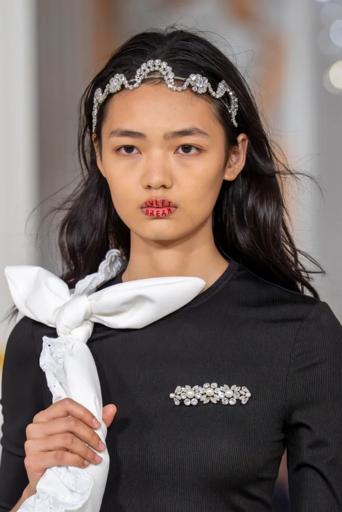 Od kada sam videla da su modeli na Simone Rocha reviji nosili reči ispisane na usnama, razmišljam o tome zašto mi ovaj makeup look nije pre pao na pamet. Dobro, biće poprilično teško postići ga sa ubičnim ružem za usne, verujem da bi se razmazao čim bih progovorila, ali deluje mi kao zanimljiv makeup koji mogu probati da izvedem sa privremenim tetovažama. Iako nije reč o svakodnevnom makeupu, mislim da ovaj look može da bude interesantan na nekom događaju – ili jednostavno zabavan za isprobati.