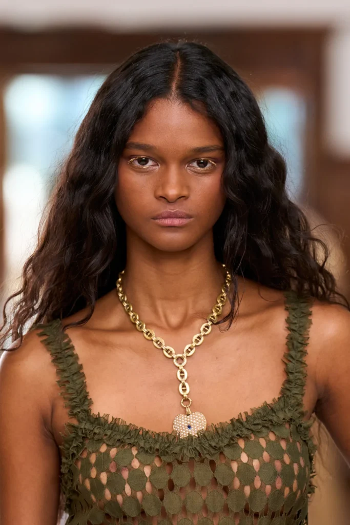 Otkada sam prvi put videla Gabbriette, sa njenim izuzetno tankim i edgy obrvama, ovakvi lookovi žive u mojoj glavi rent-free. Naravno, kako bismo postigli no brow look ne moramo u potpunosti da uklonimo obrve – što jeste kul, ali može da izazove kasnije probleme, ukoliko poželite da vam obrve ponovo izrastu – vež možemo jednostavno da ih izbelimo ili samo prekrijemo puderom. Za taktiku sa puderom, potrebno je obrve čvrsto zalepiti za facu kako bi bile što manje primetne, a verovatno će vam biti potrebno neko vreme dok ne usavršite ovaj look, ali svakako je bezbolnije od drugih opcija. Što se tiče usana, oduševio me je look na Roksanda reviji za proleće/leto 2026, gde su modeli nosili crveni karmin oivičen crnom olovkom za usne. Reč je o looku koji u poslednje vreme viđam svuda, a koji se postiže poprilično jednostavno.