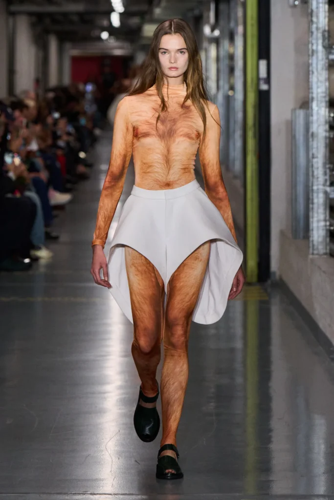 Iz rubrike kontroverzno – pogledajte debitantsku kolekciju Durana Lantinka za Jean Paul Gaultier. Od trenutka kada se Lantink poklonio na pisti u Parizu, modni svet ne prestaje da priča o ovoj kolekciji: i mišljenja su vrlo podeljena. Neki smatraju da Lantink jednostavno nastavlja putem enfant terrible-a JPG-a, dok drugi njegove kreacije vide kao nepoštovanje. Lookovi koji su izazvali najviše pažnje bili su trompe l’œil kombinezoni sa printom muških, dlakavih tela. Možda ovaj komad nije stvoren za crveni tepih, ali je svakako stvoren za Noć veštica, i lako se može rekreirati pomoću bodija u boji kože, malo tekstilne boje – i mnogo samopouzdanja.