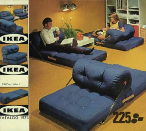 Hromirani cevasti okvir i duboki jastuci. Početkom sedamdesetih, protiv svih očekivanja, postala je bestseller. Ingvar Kamprad čak se kladio u bocu viskija da se neće prodavati — i izgubio je opkladu. Danas se smatra jednim od glamuroznih komada namještaja tog doba.