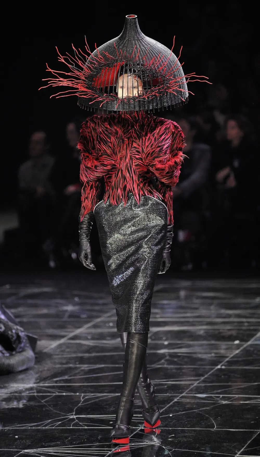Motiv perja nastavio se i unutar dvorane. Za nastup pesme “Abracadabra”, Gaga je odala počast svom prijatelju Alexandru McQueenu, noseći look 36 iz kolekcije pokojnog dizajnera za jesen 2009. Iako je skinula pleteni ukras s glave kada je stupila na pozornicu kako bi preuzela Grammy za najbolji dance/pop zapis, Gaga je zadržala crveno-crni pernati top s jastučićima na ramenima i suknju s jastučićima na bokovima.