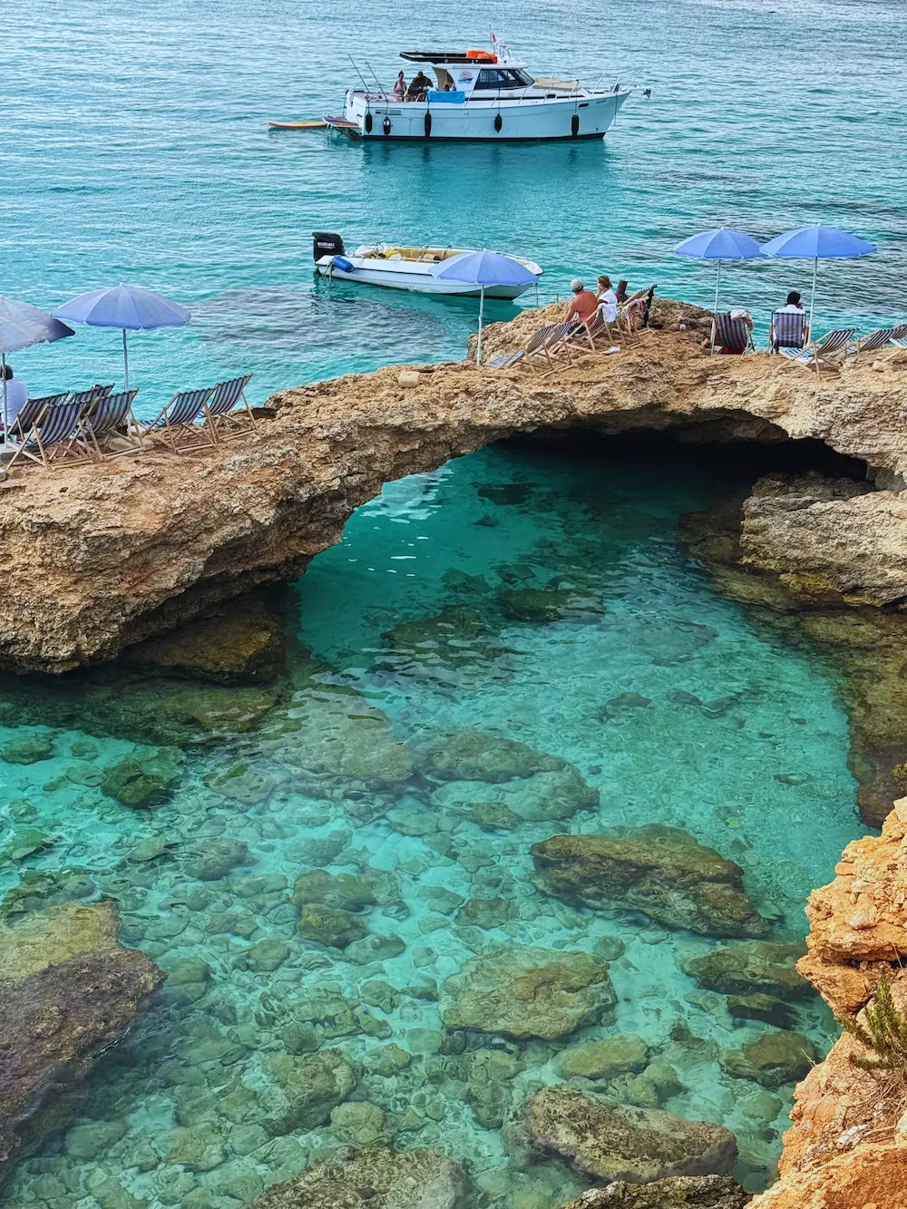 Zašto ići: Kristalno čista voda, beach bar s dobrom muzikom, ležaljke i savršen pogled na Comino.
