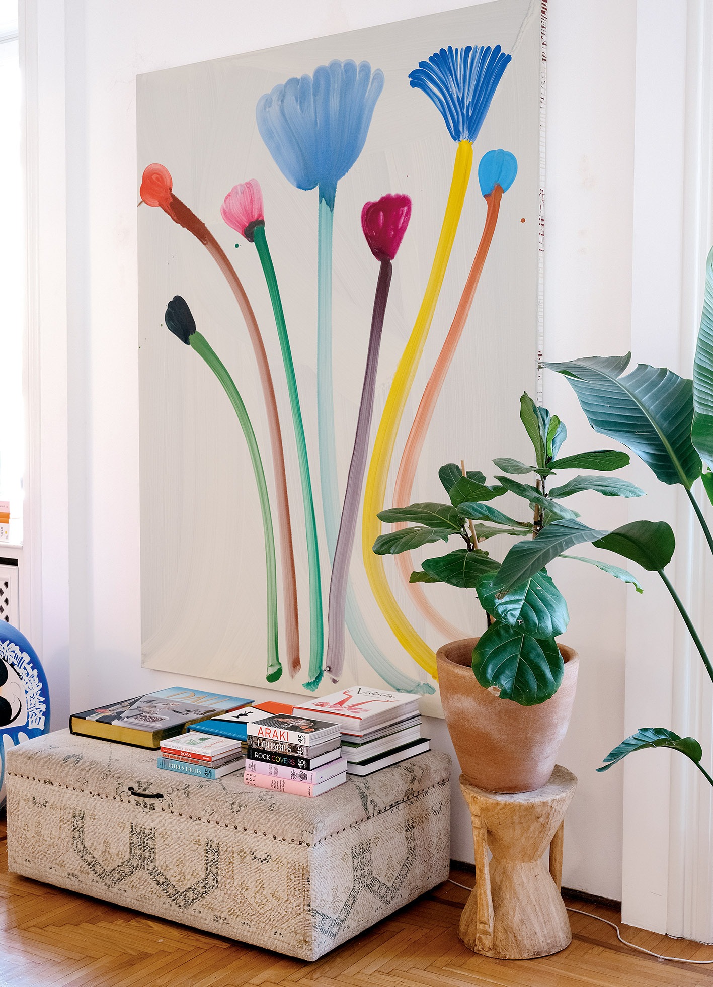 Svoj stan opisuje kao radostan prostor posvećen umetnosti. Trenutno su u njemu izložene slike iz serije „Flowers“ Grace Weaver, čiju će monografiju objaviti Taschen. „Mnoga dela koja krase ovaj dom potpisuju umetnici s kojima sarađujemo“, kaže. „Za mene su posao i privatni život uvek isprepleteni.“