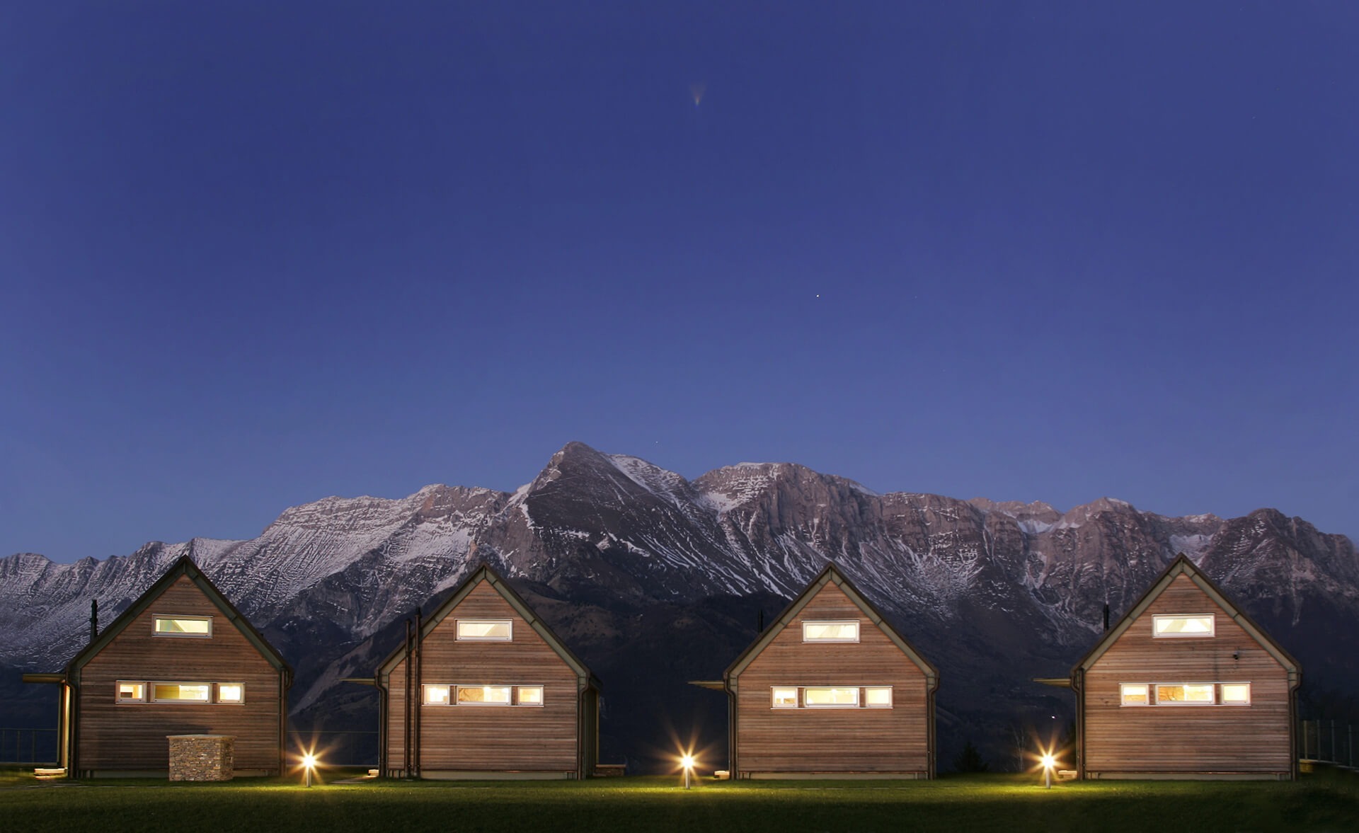 Visoko iznad doline smaragdne Soče nalaze se Nebesa Chalets, mesto gde se svet na trenutak zaustavlja. Ugrađene u padinu Kuka, četiri savremene kućice s panoramskim terasama lebde između neba i zemlje. Ovde ste deo prirode, a ne samo njen posmatrač. Arhitektonsko rešenje Roka Klanjščeka, nastalo pod mentorstvom majstora Janeza Hacina, omaž je harmoniji prirode i lokalnoj tradiciji planinskih pastirskih sela. Veliki stakleni zidovi brišu granicu između enterijera i zadivljujuće prirode, stvarajući osećaj da dišete zajedno s planinama. Ovde ćete pronaći sve što vam je potrebno – toplu saunu s pogledom na beskrajne planinske vrhove, kamin kraj kojeg ćete zaboraviti na vreme i osećaj da ste daleko od sveta, a istovremeno tačno tamo gde treba da budete. Savremena interpretacija pastirskog sela skladno se stapa s netaknutom prirodom, kao da je oduvek bila njen deo. Dolina Soče nudi bezbroj aktivnosti – od brojnih planinarskih staza do kajaka i veslanja na dasci (SUP-a) po jednoj od najlepših reka u Sloveniji.
