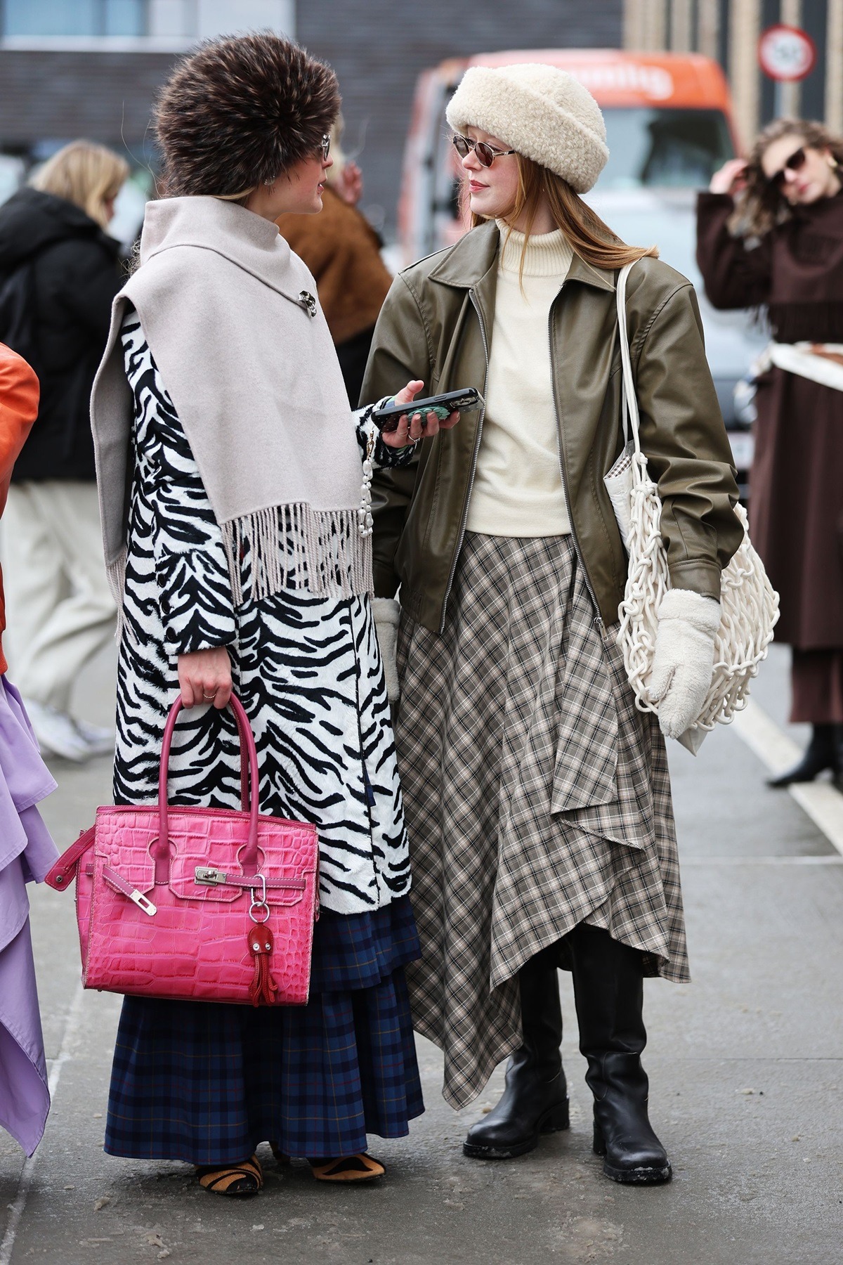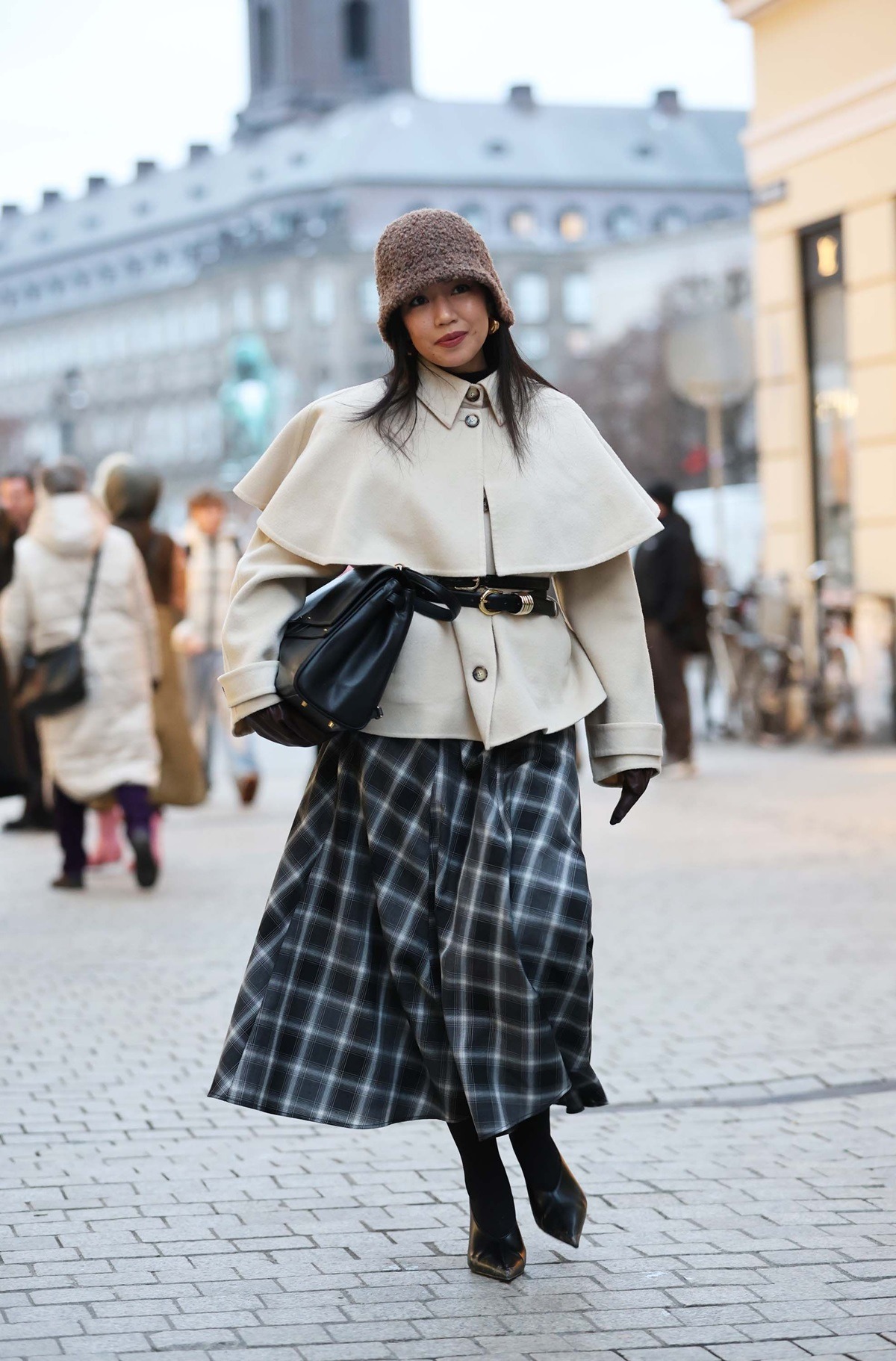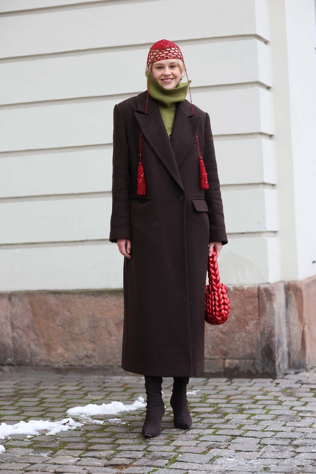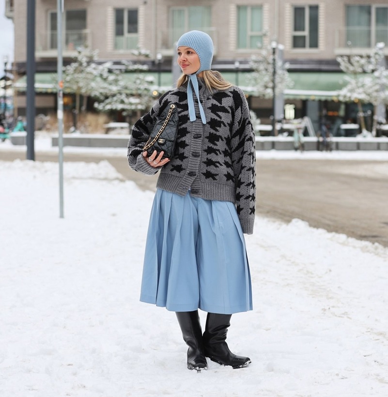 Neke od trendseterki su bile poprilično odvažne u kreiranju svojih lookova (da, gledamo sve u sandalama bez čarapa!), no većina je – na sreću – posegnula za trendi dodacima koji su istovremeno začinili styling i štitili od hladnoće. Duge kožne rukavice kao sinonim vintage elegancije, šalovi u kontrastnim bojama i krznene stole odigrale su glavnu ulogu, baš poput velikih, upečatljivih šubara i slatkastih bonnet kapa koje su trendseterke u pletenim verzijama vezale oko ušiju. Scandi devojke su svoje zimske outfite dodatno podizale i super popularnim pillbox šeširom u bezbroj varijanti, kao i jarko crvenim torbama koje svakom looku daju dozu svežine i posebnosti.