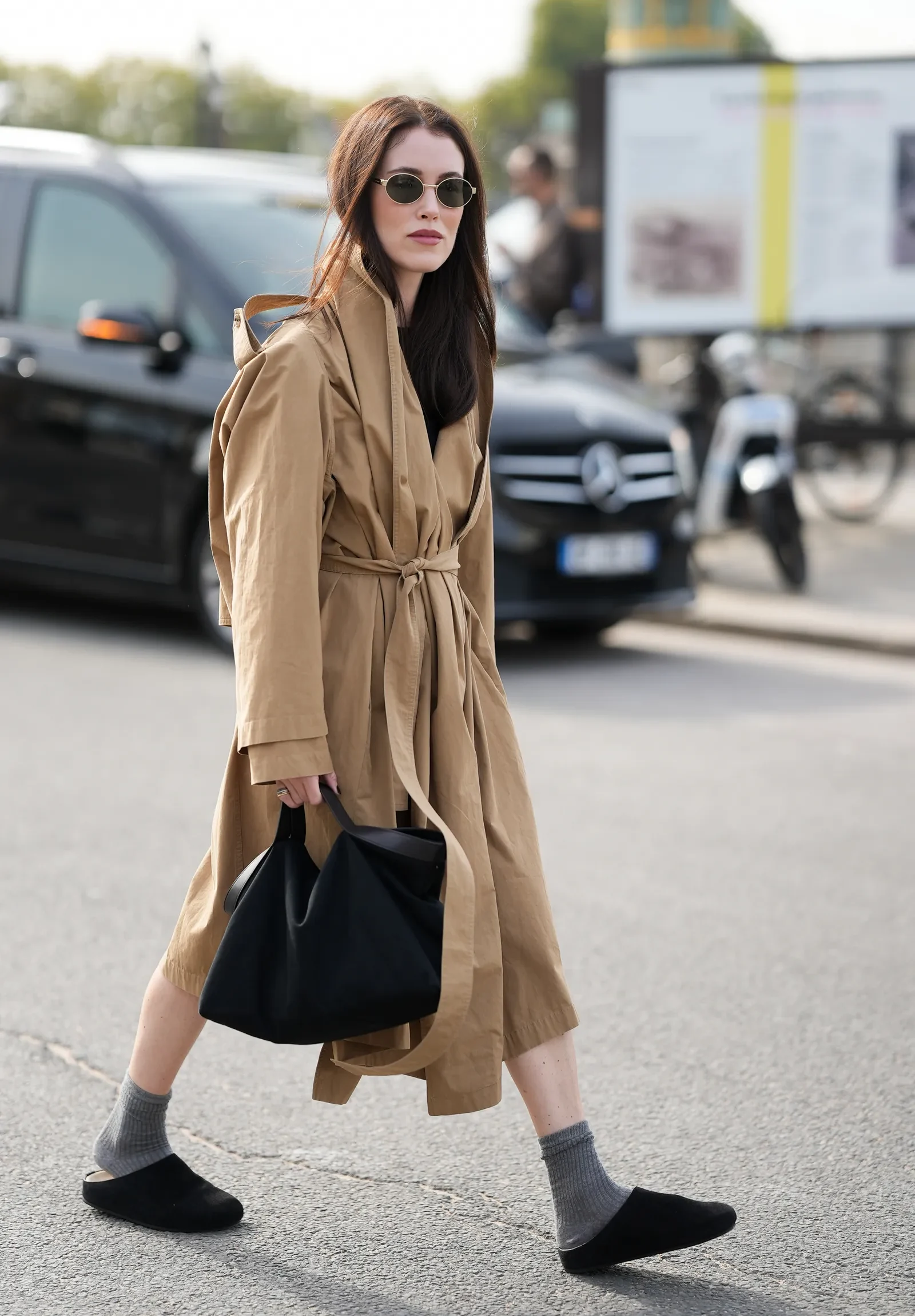 Preuzimanje modne scene od strane papuča (ili „klompi“, u zavisnosti od debljine đona) odvijalo se tiho, ali ga je nemoguće ne primetiti. Pre nekoliko meseci zapazila sam svoju koleginicu Joy Montgomery za radnim stolom u sjajnim, minimalističkim kožnim klompama – prelepe su, prilično utilitarne. „Za mene se tajna njihove popularnosti krije u strukturisanom, zaobljenom vrhu, koji je savršen da uravnotežite pantalone poput mojih omiljenih širokih farmerki“, napisala je tada. „Planiram da ih nosim uz opuštene krojene pantalone i oversized kožnu jaknu, za jednostavno doteran kancelarijski look.“