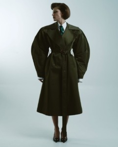 Zašto ga je odabrala: „Iako je Elysian majstor večernje elegancije, ovaj put me je posebno privukao trench coat koji istražuje drugačiju vrstu lepote – smeštenu u moćnoj, maskulinoj silueti s dozom retro sofisticiranosti. U njemu osećam suptilan prizvuk osamdesetih, vremena kada je odeća imala jasan gest, stav i prisutnost. Ovalni, skulpturalni rukavi dodaju dramatičan volumen, gotovo kao da obgrljuju telo, dok precizno naglašeni struk unosi strukturu i disciplinu u pokret. Sve zajedno stvara siluetu koja je istovremeno snažna, elegantna i poetski grafična. Krojen je tako da deluje kao oslonac – forma stoji čvrsto, a ipak se skladno kreće. U njemu vidim savršeno otelotvorenje Elysianove estetike: spoj konstrukcije, emocije i prefinjene nostalgije koja nikad ne ostaje samo u prošlosti, već se prevodi u savremeni izraz.“