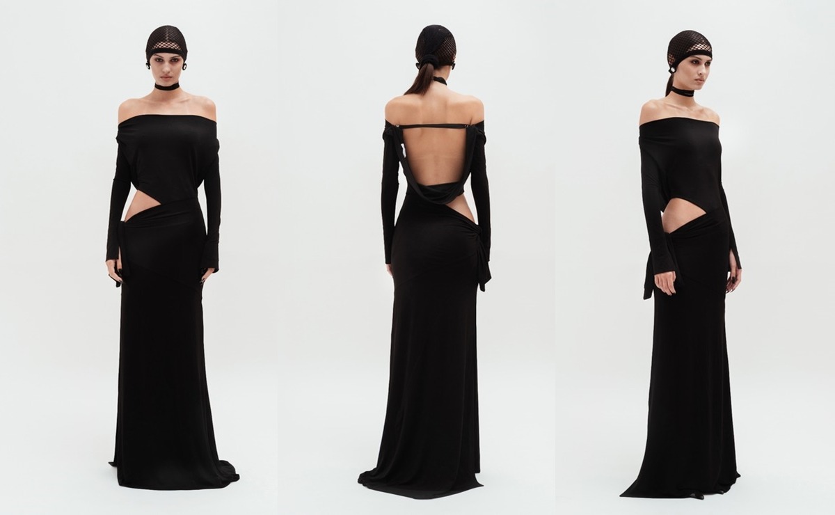 Zašto ga je odabrala: „Sanda Simona izgradila je izrazito prepoznatljivu estetiku u kojoj se minimalizam, eros i konceptualna provokacija spajaju u jedinstven vizuelni jezik. Na prvi pogled njeni komadi deluju jednostavno, ali u sebi nose jasnu nameru: istražiti odnos tela, pogleda i identiteta. Njene kreacije uvek su odvažne, ali suptilno kontrolisane. Stalno je prisutna precizna igra napetosti između kože i tkanine – odeća istovremeno otkriva i skriva, obgrljuje figuru, ali je nikada ne guši. Ova haljina to savršeno otelotvoruje: dovoljno je zatvorena da ostane sofisticirana, a dovoljno otvorena da iscrtava liniju tela i naglašava tihu, samosvesnu senzualnost koja je Sandin zaštitni znak.“