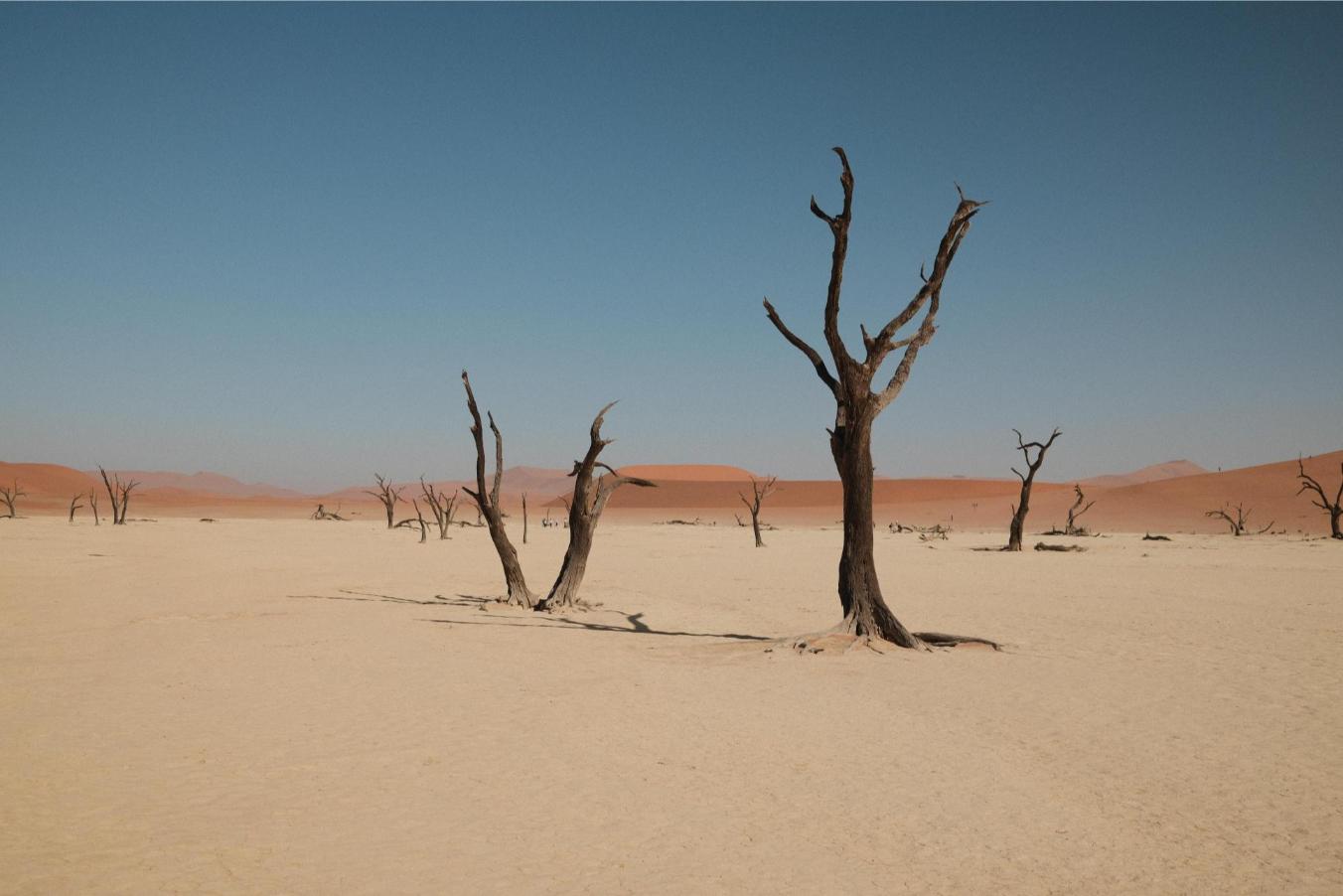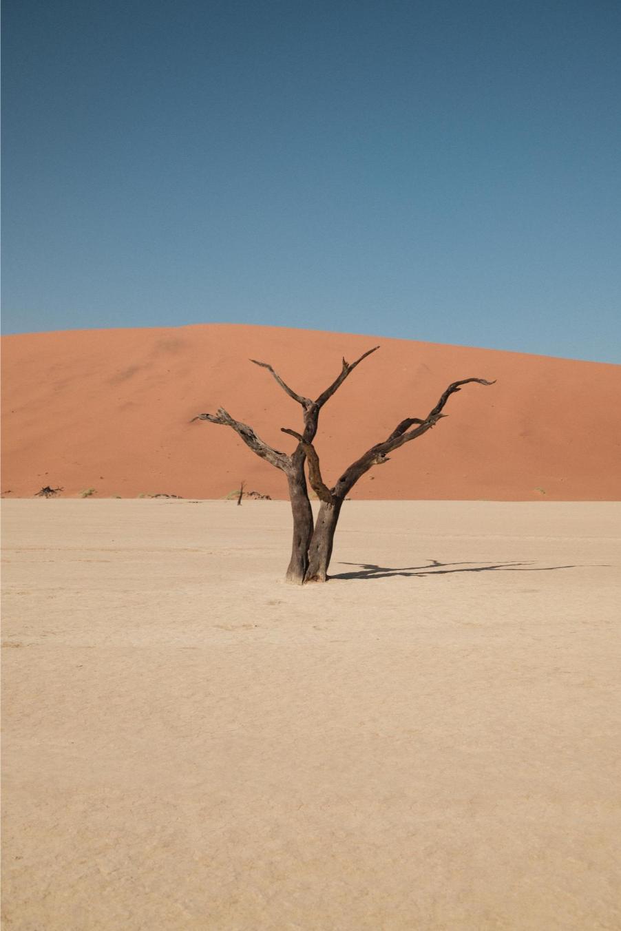 Deadvlei je dolina u srcu pustinje Namib, mesto gde je nekada tekla voda, a sada su ostale samo brazde isušene gline. U Deadvleiju vlada potpuna tišina. Crna stabla, mrtva stotinama godina, stoje nepomično na beloj glini, okružena crvenim dinama i plavim nebom. Ne deluje kao mesto smrti, već kao mesto sećanja da je i ovde nekada postojao život.