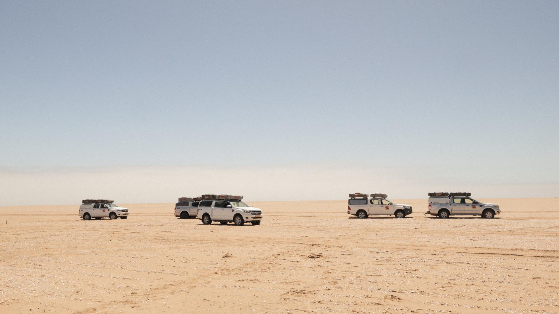 Putovali smo u konvoju od šest džipova, po četiri čoveka u svakom, dvadesetoro nas, sa četiri vodiča: Đorđe i Ivan, kao i lokalci Chris i Jack. Šatori su bili na džipovima, kanisteri s vodom u prikolicama, dupli rezervoari i frižider sa hranom. Vozili smo 4×4 vozila, Ford Ranger i Toyota Hilux. Tokom četrnaest dana prešli smo oko tri i po hiljade kilometara, probušili pet guma, spalili jedne kočnice i imali nekoliko sitnih kvarova.