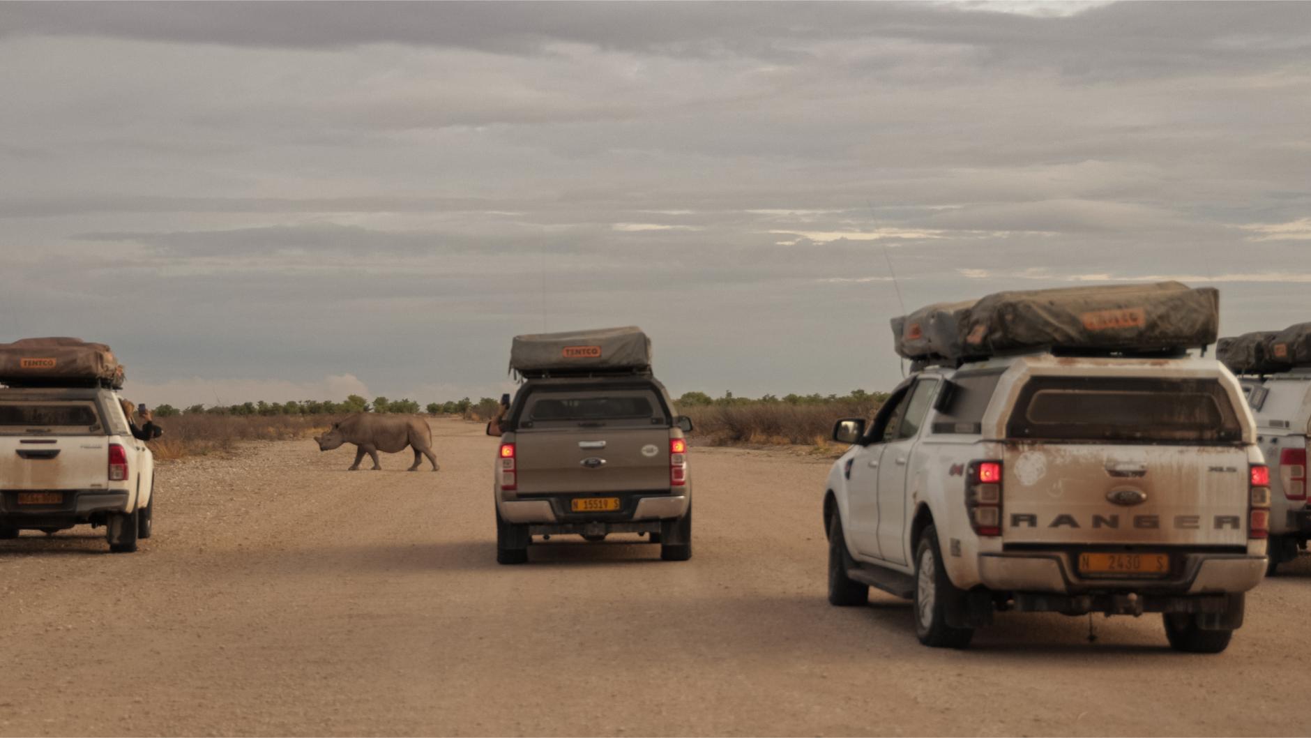 Čim smo ušli u park, videli smo crnog nosoroga, životinju koju smo prethodnih deset dana pokušavali da pronađemo. To je Etoša, svi su tu. Nedugo zatim, trofeji su se nizali, od životinja koje su mi poznate; jedino nismo videli leoparda.
