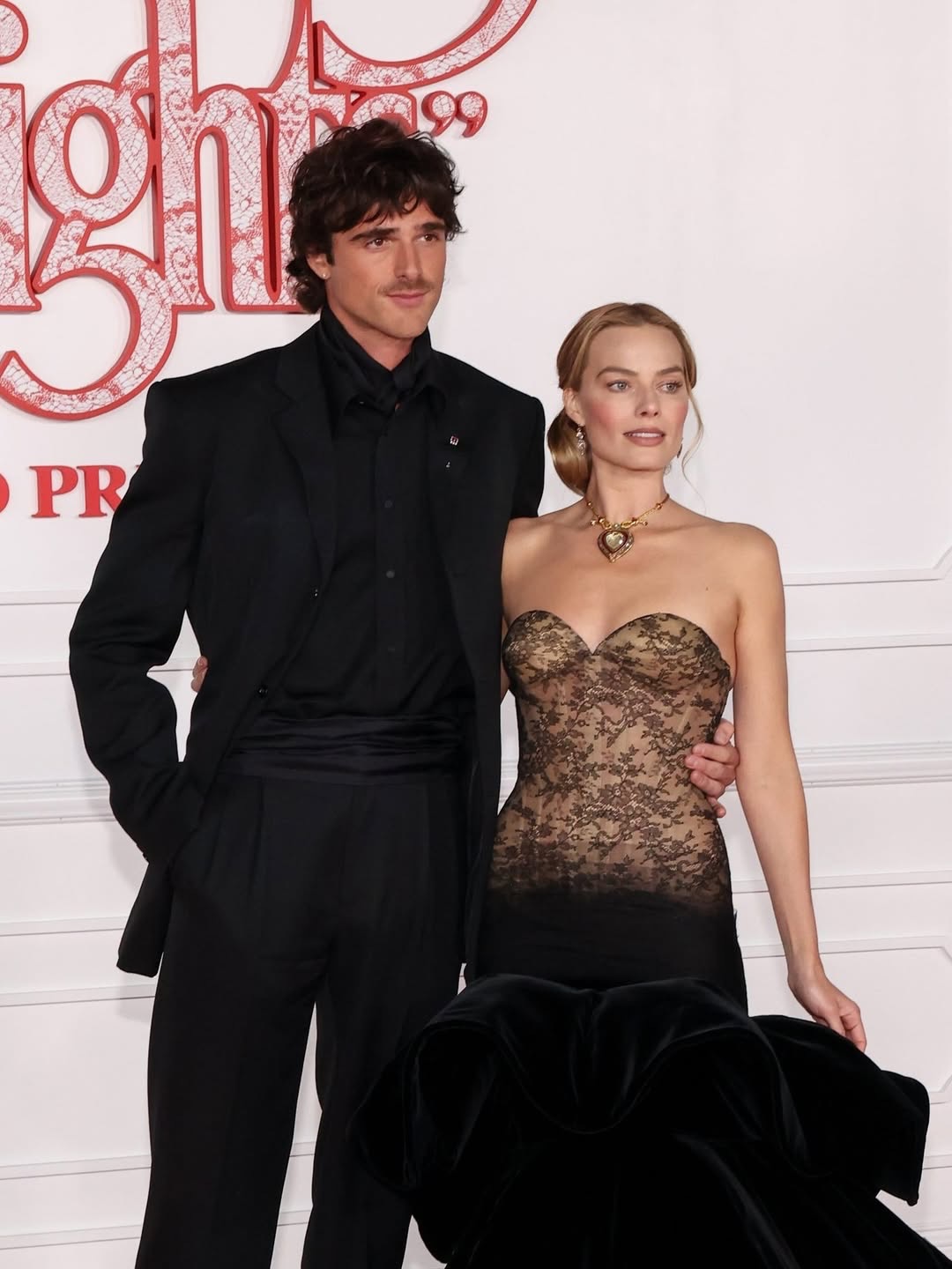 Istina je da se film oslanja na zvezde u glavnim ulogama, Margot Robbie i Jacoba Elordija, glumce koji nas, naizgled bez imalo truda, uvek ostavljaju bez daha. Međutim, nešto je posebno privlačno u njihovim najnovijim lookovima koji se, samo malo, oslanjaju na method dressing s klasičnim raskošnim siluetama prožetim „mračnim“ elementima. Jacob Elordi se, kao i obično, odlučio za svedeno Bottega Veneta odelo, na šta imam samo da kažem: if it’s not broken, don’t fix it. Ali suptilni pojas ispod sakoa, sličan onima kakve su oficiri nosili početkom 19. veka, ipak je nagovestio da je od svoje kolegice naučio par stvari o method dressingu.