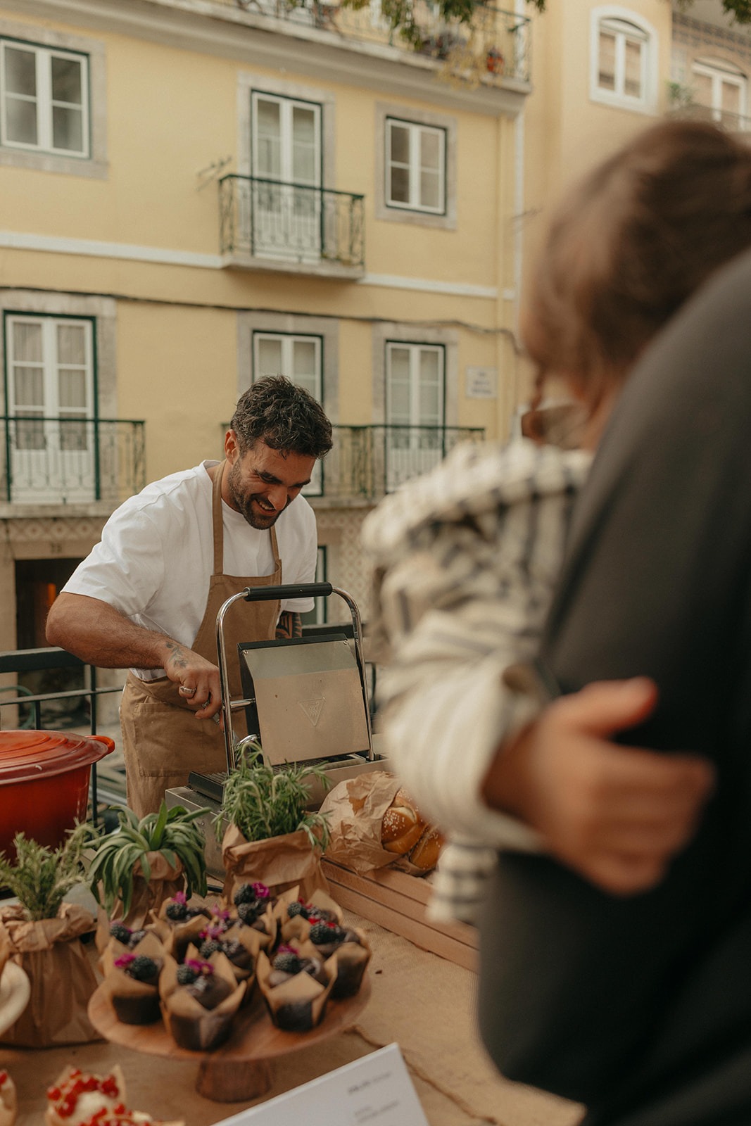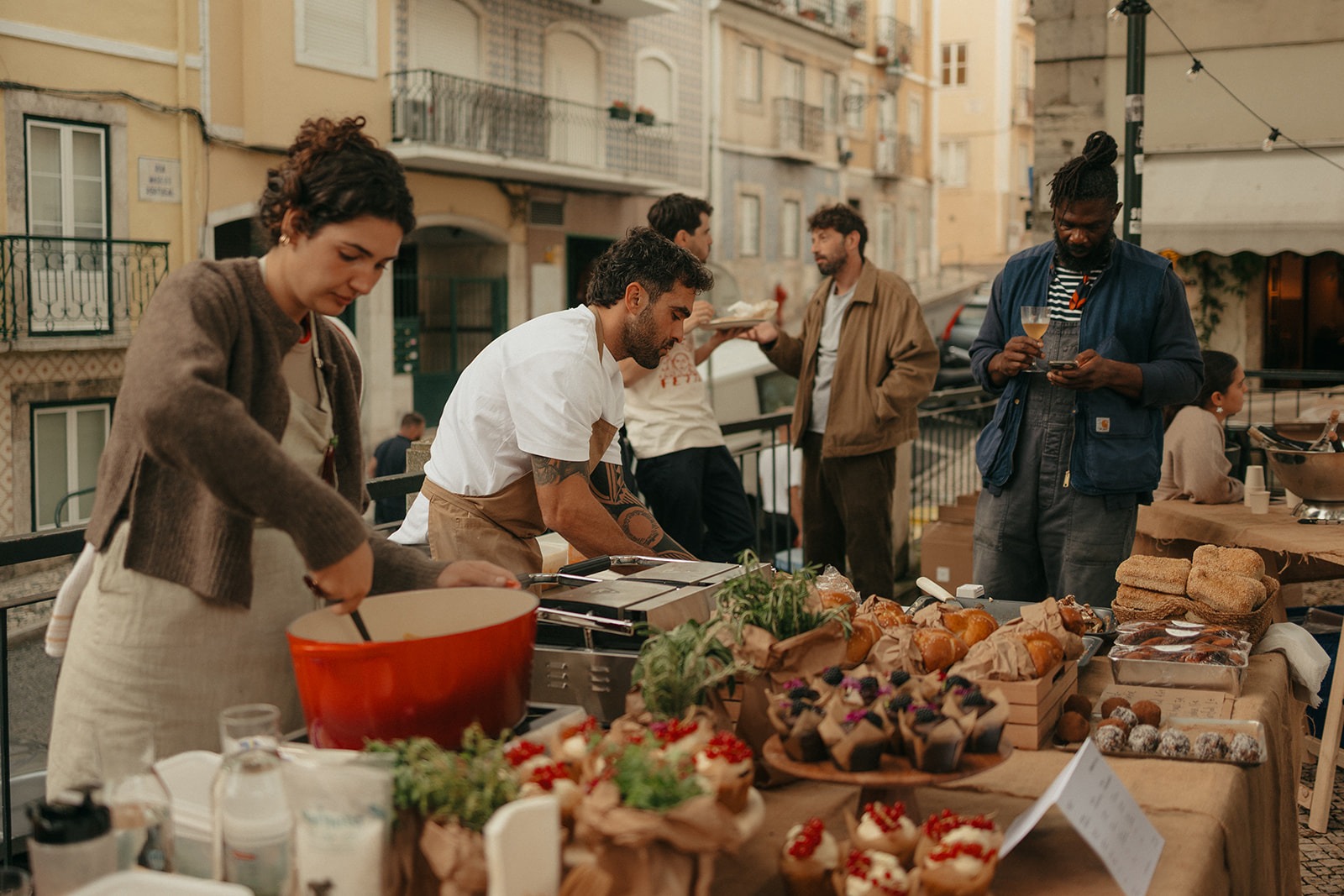 Na nekoliko štandova lokalni proizvođači nude sezonsko i organsko povrće, sveže sečeno cveće, hleb, vino i jela iz susednih restorana. Ležerno je, ljudi se zadržavaju i razgovaraju. Dok šetam između štandova, postaje mi jasno zašto me Portugal već godinama tiho privlači. Sve što sam taj dan posetila u Lisabonu – od knjižare do trga, od bistroa do ovog malog marketa – povezuje ista nit. Zajednica. Svesniji način života, povezanost s onim što konzumiramo i s ljudima oko sebe.