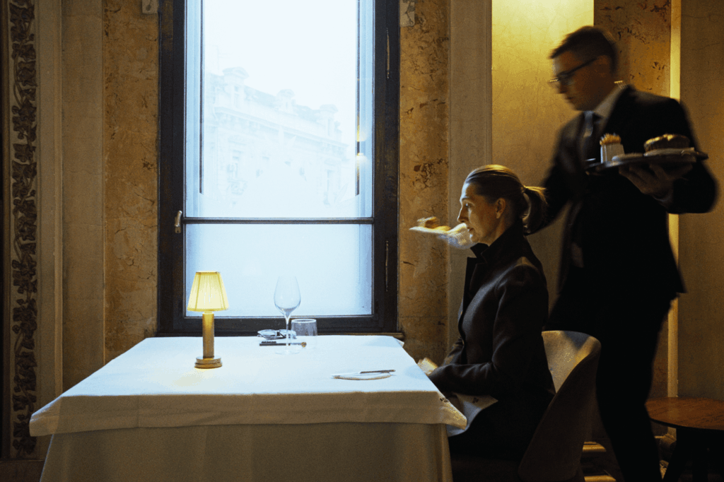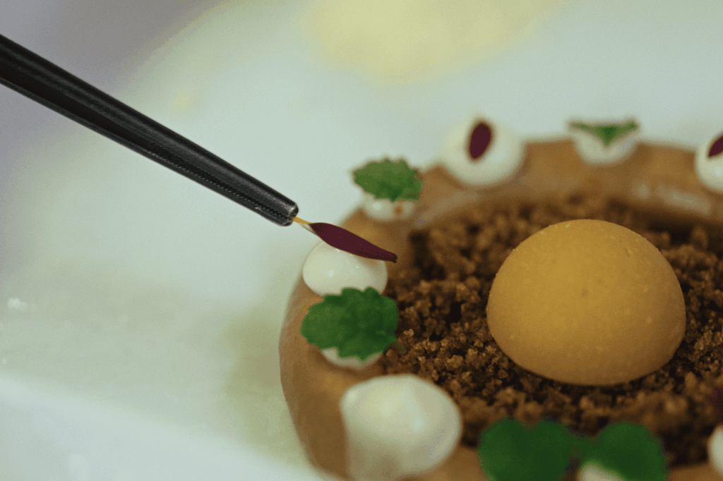 Poslednji u nizu od čak sedam pažljivo kreiranih jela je dezert – za Mariju to je mus od čokoladnog hleba i domaćeg karamel sosa, sastavljen iz tri dela. Uživa u svakom zalogaju, baš kao što ovaj prostor uči da prisustvo u sadašnjem trenutku može biti jednako važno koliko i sećanje.