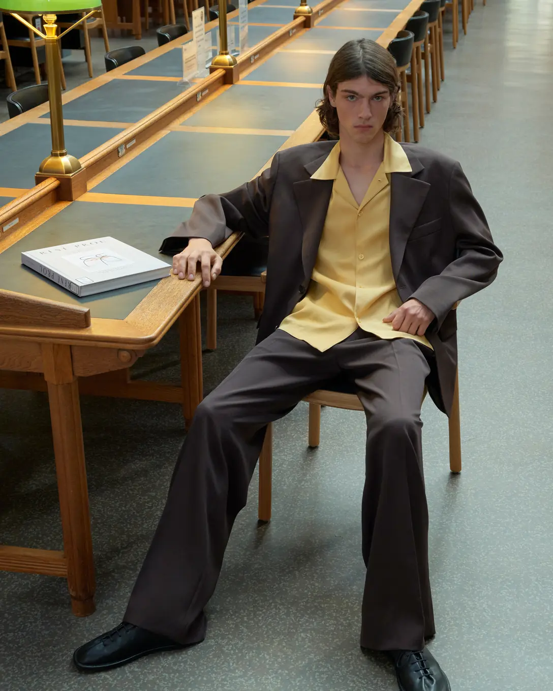 Rafinirani materijali redefinišu klasiku muške garderobe: mantil krojen od svile umesto pamuka, lepršave pantalone u kontrastu sa precizno krojenim kožnim kaputima. Taj spoj mekoće i strukture oblikuje diskretnu profinjenost, gde savremenost dolazi do izražaja kroz detalje i konstrukciju.