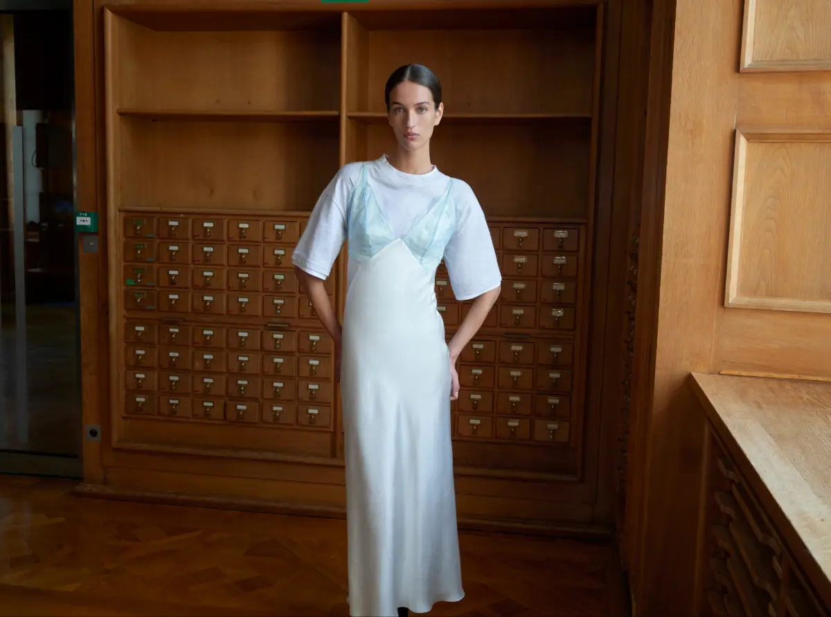 Vođene morskim povetarcem, siluete se otvaraju u prirodnom ritmu. Karneri, rese i lagane tkanine slobodno se kreću, stvarajući fluidan, i vibrantan izgled. Sezona slavi višeslojnu ženstvenost koja bez zadrške prihvata sopstvene paradokse. Ipak, ta fluidnost i mekoća nisu shvaćene doslovno. One se kombinuju sa strukturiranim elementima, peplum jaknom stegnutom u struku, novim krojevima odela koji oblikuju siluetu i širokim pantalonama koje menjaju proporcije. Materijali govore s namerom, izrađeni s preciznošću i pažnjom: bogate teksture, raskošni vezovi, pažljivo izrađeni detalji. Na ruci, nova torba modne kuće, Mymi, daje silueti izgled žene u pokretu, samouverene i savremene. Sve je u suprotnostima koje se prepliću: sjaj i mat teksture, transparentnost i neprozirnosti, mekoća i preciznost.