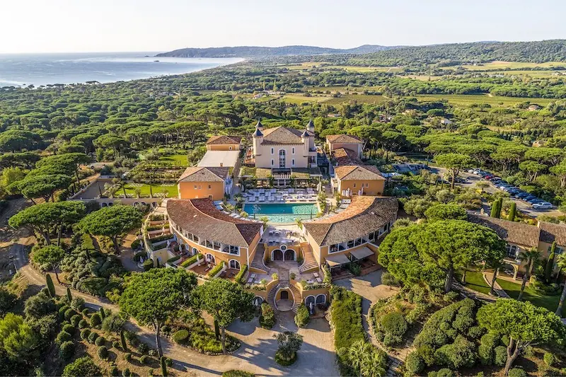 Sa svojim brojnim hektarima imanja i pogledom sa brda na zaliv Sen Tropea, vinograde Ramatuela i plaže Pampelona, već dugo je omiljena destinacija svetskog džet-seta. Danas hotel poseduje i kolekciju automobila Rolls-Royce (naravno, sa vozačima), kojima gosti mogu da obilaze region – bilo da idu u grad ili do plažnog kluba. Tu su i bujni teniski tereni, veliki centralni bazen i prostrane bašte. Više nego dovoljno prostora za haos, intrige, seks i razne nepodopštine koje fanovi mogu da očekuju od gostiju i osoblja serije The White Lotus.