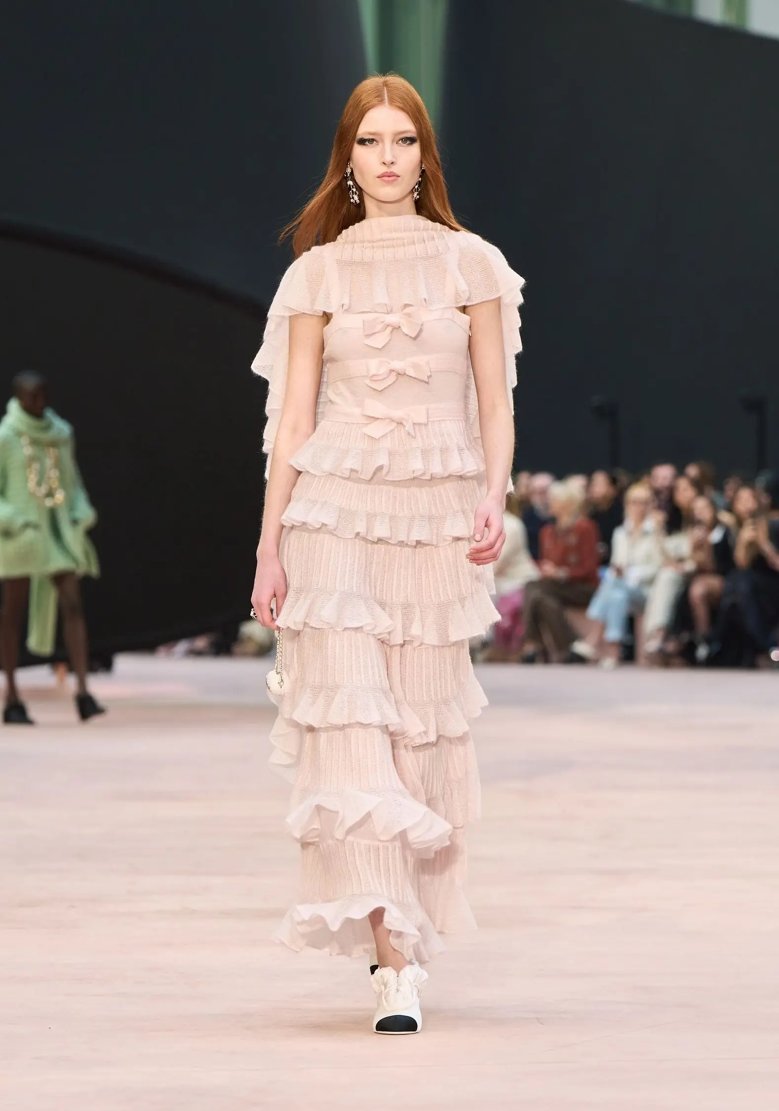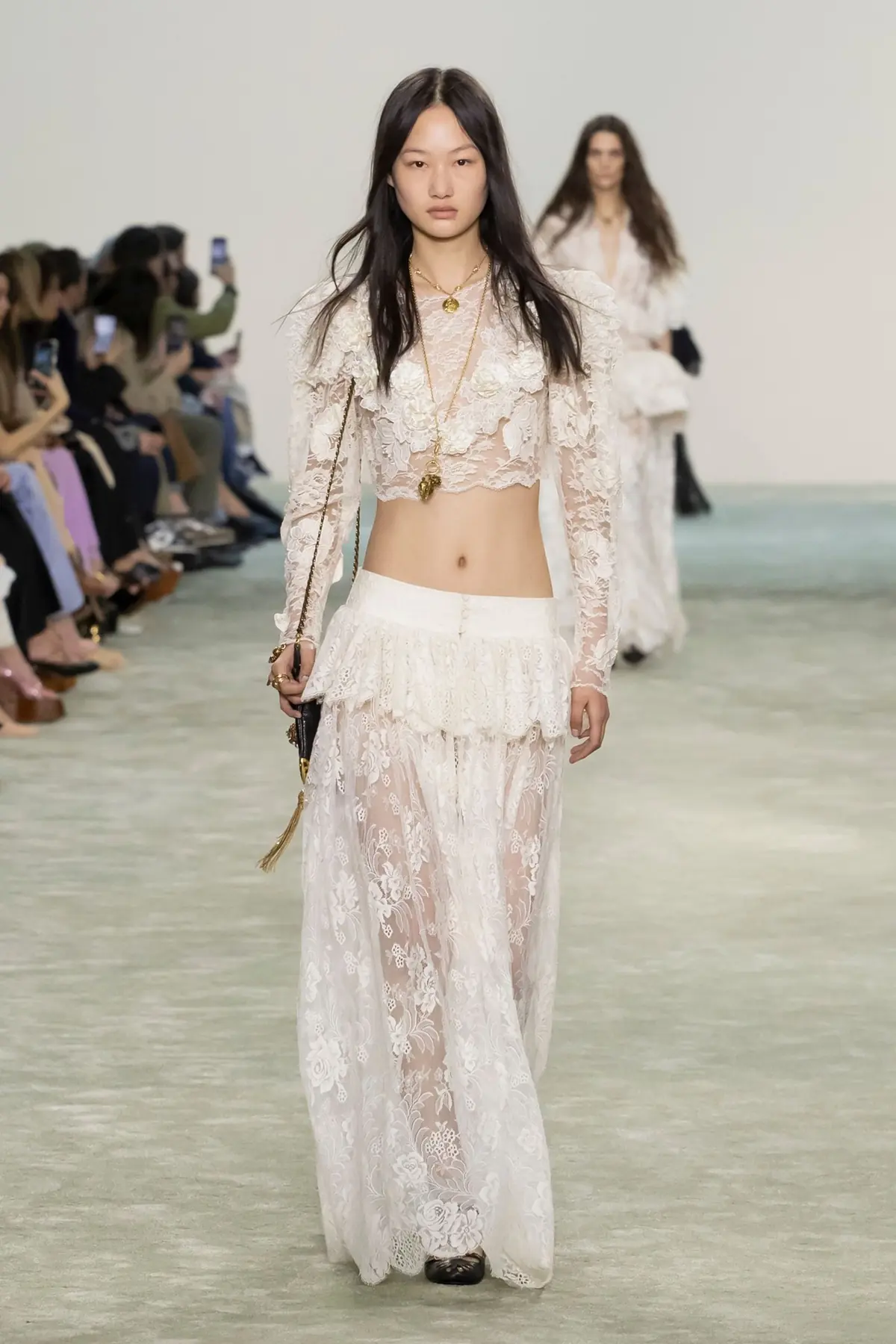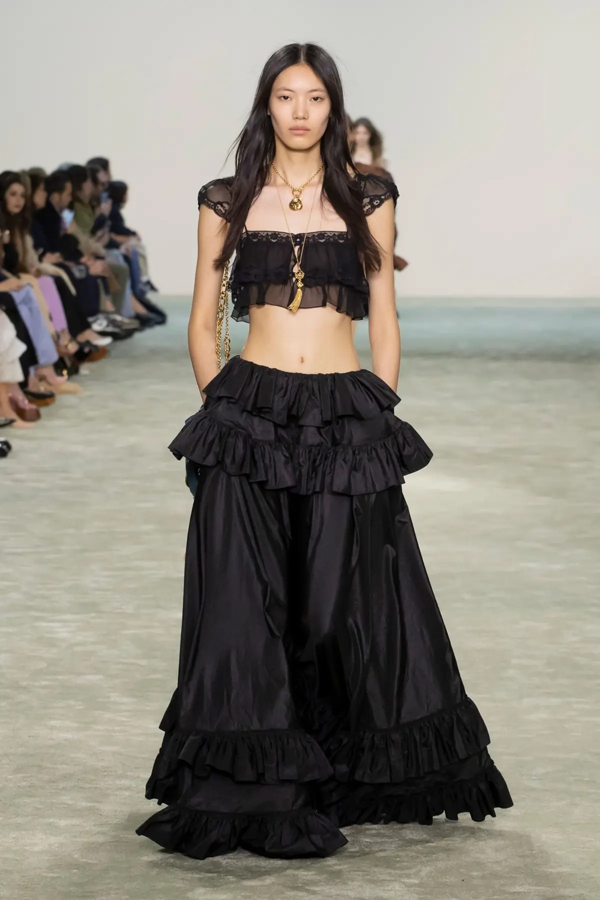 Lepršave i prozračne haljine začinjene volanima su neprikosnoveni simbol romantike. Na pisti ih je posebno oživela vizija Chemene Kamali za Chloé koja je fashion publiku još jednom podsetila koliko voli boho stil, no u kreiranju trendova za jesen/zimu pridružili su joj se i brendovi poput Chanela i Zimmermanna. Ono što treba istaći jeste da sa volanima vredi pravilo kao i sa čipkom – ove hladne sezone nose se u kontrastu sa robusnim kožnim jaknama ili oversized krznenim kaputima, čime romantični prizvuk dobija savremeni, urbani obrt.