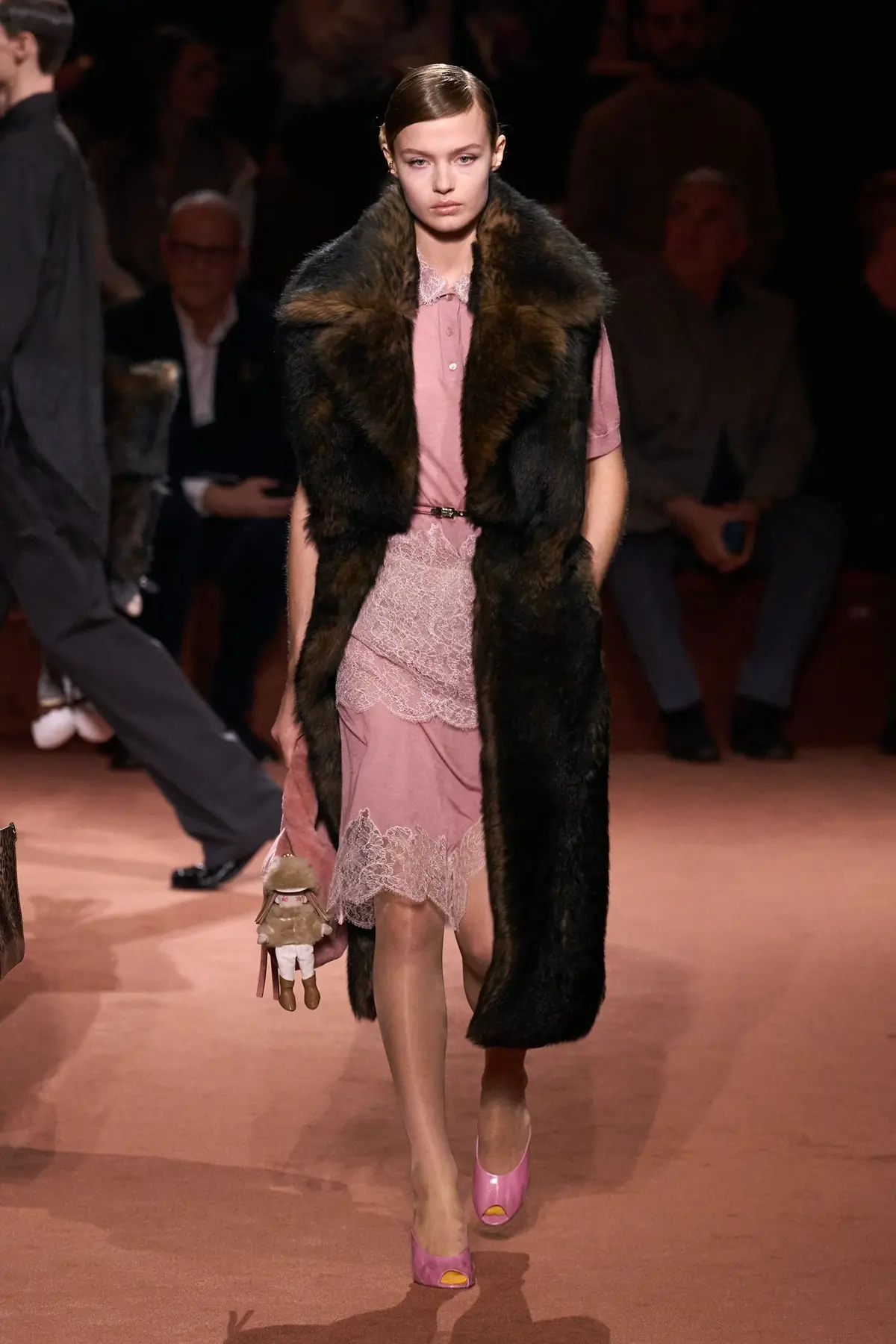 Sve je započelo sa večnom vizionarkom Miucciom Pradom. Nepogrešivo osluškujući puls društva, za proleće 2025. predstavila je kolekciju koja se “opire algoritmima”, a potom je za jesen zakoračila u smer “žene kojoj se jednostavno ne da da prati modu”. Naizgled različite, obe kolekcije dele isti koren – zasićenost trendovima koja nas je dovela do ravnodušnosti. Upravo zato Pradina žena ove jeseni izlazi raščupane kose, u prevelikoj, pomalo staromodnoj odeći, ostavljajući utisak da je prema svemu jednostavo ravnodušna. Siluetu obeležavaju krojevi i dužine koje prikrivaju telo, dok su ključni elementi slojevito odevanje i retro prizvuk komada koji izgledaju kao da smo ih izvukle iz ormara u koji decenijama niko nije zavirio.