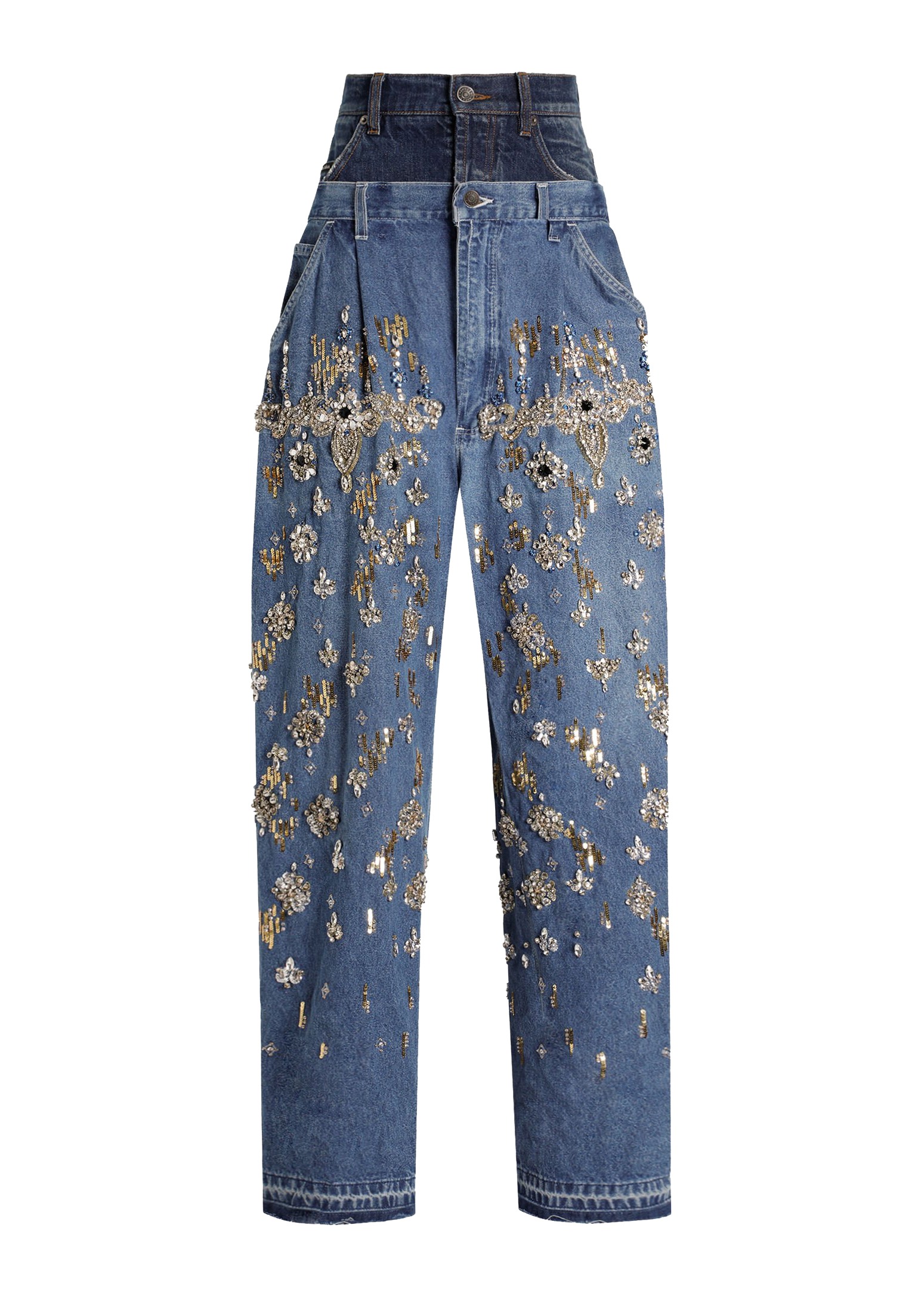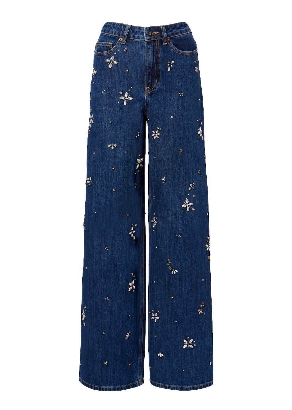 Povratak blještavog denima jasno su najavile jesenje modne piste, koje su predstavile više ili manje ekstravagantne modele, a ubrzo su ih (naravno) pratile i high street prodavnice sa svojim cenovno pristupačnijim, ali ništa manje sofisticiranim verzijama. Čar ukrašenih farmerki leži upravo u njihovoj dvostrukosti – one su opuštene, a profinjene, ulične, a modne, i predstavljaju savršen spoj svakodnevne praktičnosti i ekstravagantnog glamura, koji i najjednostavniji izgled podiže na sasvim novi nivo.