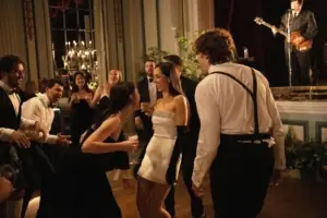 Za završne plesne sate usledila je treća transformacija: kratka bela strukturisana mini haljina s kristalima oko dekoltea, crne satenske rukavice i ponovo crne lakirane Jimmy Choo cipele, „za look kao iz starog Hollywooda.“ Mladoženja je kroz vikend menjao modne dodatke, s posebnim akcentom na Cartier: crno-zlatne manžete u petak, srebrne manžete u obliku voštanog pečata na dan venčanja i dvoobojni Cartier Santos sat — „moj poklon za njegov 30. rođendan“.