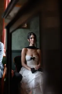 Modna priča venčanja bila je jednako promišljena. Eva se priseća kako je odrasla kao „izuzetno ozbiljna balerina“, trenirajući prosečno pet sati dnevno, sedam dana u nedelji. „Balet je duboko oblikovao moj modni senzibilitet – privlači me dinamičan spoj kretanja i strukture“, objašnjava. Til, šifon i svila za nju su sinonim elegancije: čista, klasična silueta u pokretu. „Balet mi je usadio i ljubav ka vintage visokoj modi, odevnim komadima koji nose nasleđe prošlih umetnika i dizajnera. Zato volim da mešam moderne komade s vintage coutureom: to je moj način da odam počast klasici, istoriji i umetnosti dizajna.“