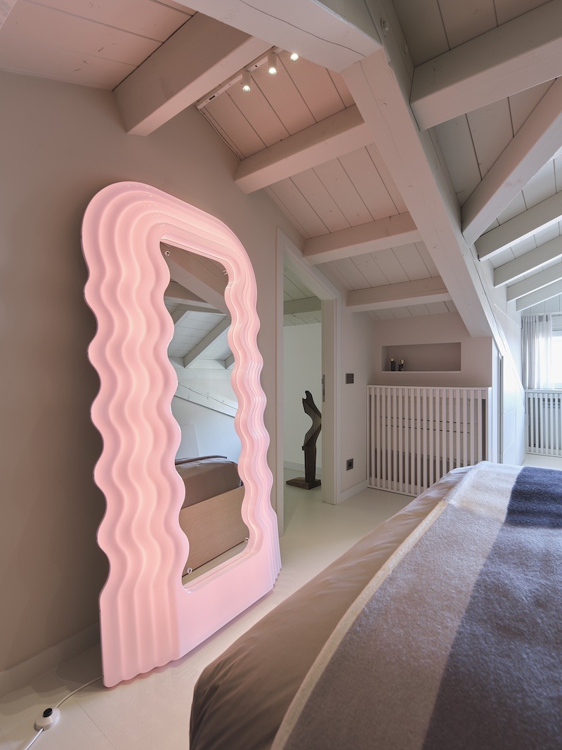 “I choose the Ultrafragola mirror, a piece designed by Ettore Sottsass for Poltronova, and it is an iconic work by this Italian designer. It is a mirror that integrates light, bold yet functional. It is more than an ordinary mirror; it is a piece that functions like a sculpture.”