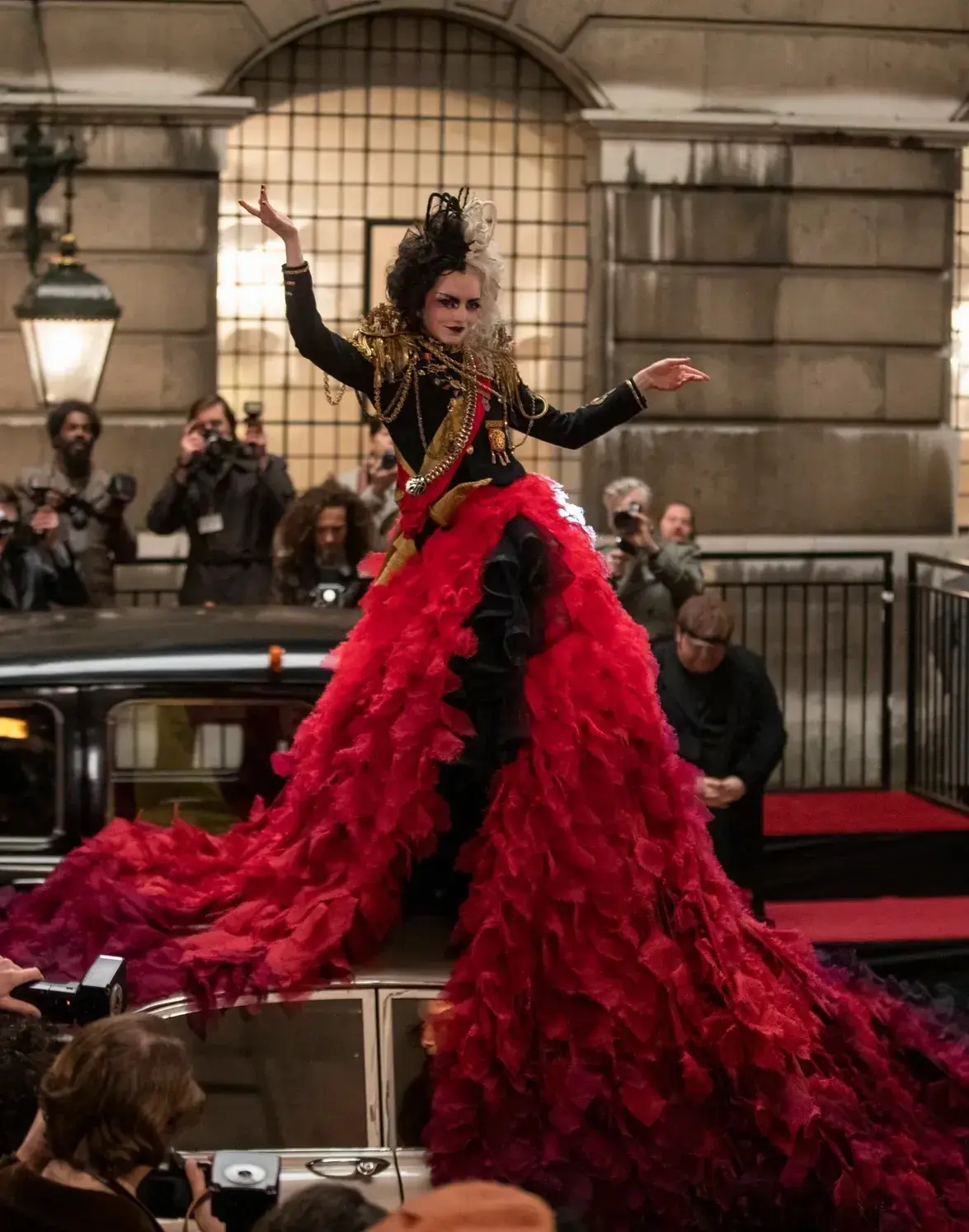 Unlike superheroes who often save the world in overly tight suits of questionable aesthetic value, or choose outfits that never conflict with the moral purity of their intentions, antiheroes and villains proudly display the full splendor and superiority of their style. Cruella de Vil, portrayed by Emma Stone in the 2021 adaptation, is a quintessential example of the fashion dominance of cinematic villainesses. Three-time Oscar-winning costume designer Jenny Beavan turned Estella’s transformation into Cruella into a true fashion spectacle. Simple combinations were replaced with blood-red gowns, show-stopping coats, fitted blazers lavishly adorned with epaulets and brooches, and breathtaking creations such as a skirt covered in thousands of hand-sewn petals or a couture dress made from a massive pile of textile waste transformed into a dramatic train. The story is set during London’s punk revolution of the seventies, so Cruella’s looks draw inspiration from the designs of Vivienne Westwood, the expressive style of German musician Nina Hagen, and Alexander McQueen. Yet Cruella’s anti-establishment style is more than a reflection of her era; it is a declaration of her character. Her eccentricity mirrors her defiance. This privilege of rebelliousness shared by antiheroines is also evident in the rave-punk-DIY style of Harley Quinn, played by Margot Robbie in Suicide Squad. Her fashion chaos is a manifestation of her inner turmoil, and it would be entirely unacceptable for her to look any other way.