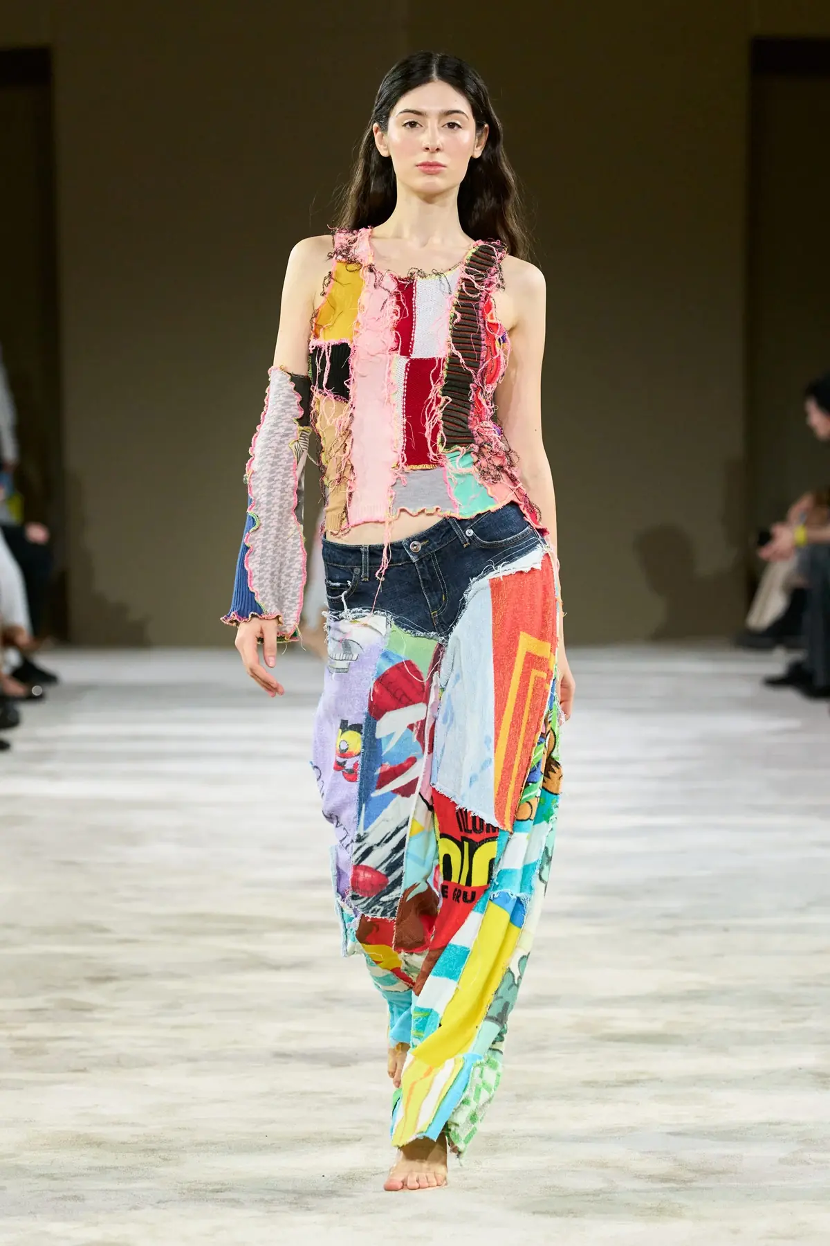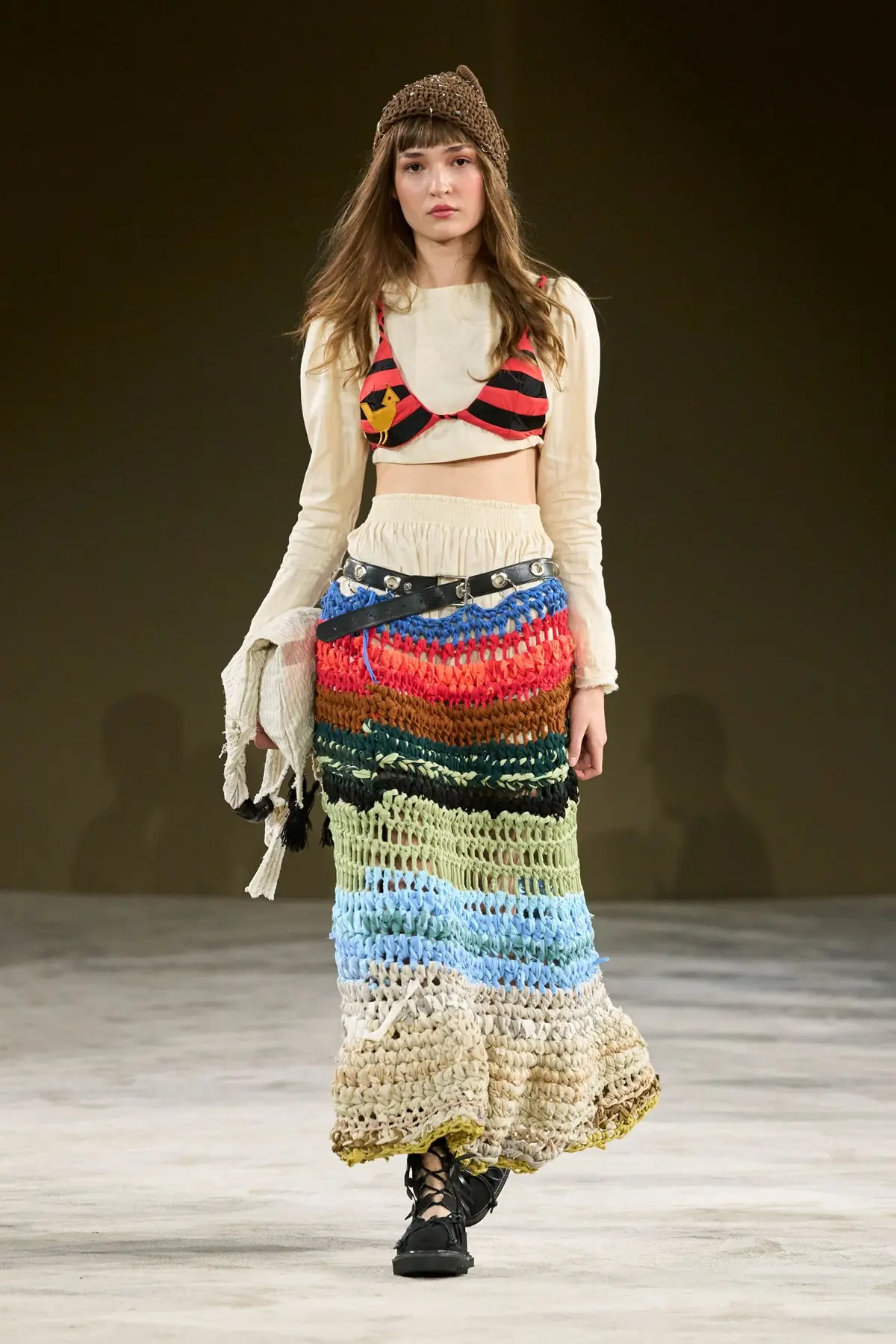 Reinterpreted ethnic elements appeared in many other collections as well. Borbala combines them into an eclectic ethno-cartoon-pop patchwork, while Rxquette incorporates lace and embroidery into monochromatic minimalist forms. Guest designer from Moldova, Vidrascu, contrasts traditional embroidery with the fluidity of silk silhouettes, with tiny bells hidden in the garments charmingly jingling to the rhythm of the models’ steps. The playful, barefoot trompe-l’oeil show by Rafaela Pestritu captured the true gypsy spirit of freedom in a thoroughly modern way. The brand Ami Amalia weaves its fairytale-like pieces in Transylvania from the finest yarns, and this year, the collection was perfectly extended with silk motifs and prints inspired by folk stories and legends.