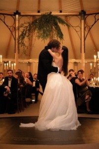 Saturday, the day of the ceremony, brought the most classic bridal choice with a Vera Wang gown. The dress featured a slightly dropped waist, and over the Italian tulle, basket-weave organza floated ethereally with every step. The bride paired it with a lace Vera Wang veil, white satin Cornelia James gloves, an ivory Vera Wang ribbon tied slightly off-center, and a tulle smoke ring. For jewelry, she chose emerald-cut diamond earrings and two tennis bracelets – one diamond and one aquamarine, “one gifted by my mother and the other by Eric”. The look was completed with white satin Jimmy Choo shoes featuring a personalized plaque with the wedding date. The groom wore a custom tuxedo by The Armoury New York